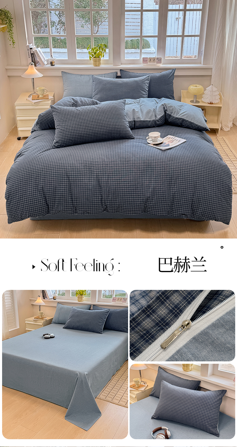 当前位置: 91家纺网 > 商品网购 > 床品套件 > 四件套 > 全棉普通四件套 > 梦依依 2026新款全棉色织水洗棉拉链款四件套 玛丽兰
