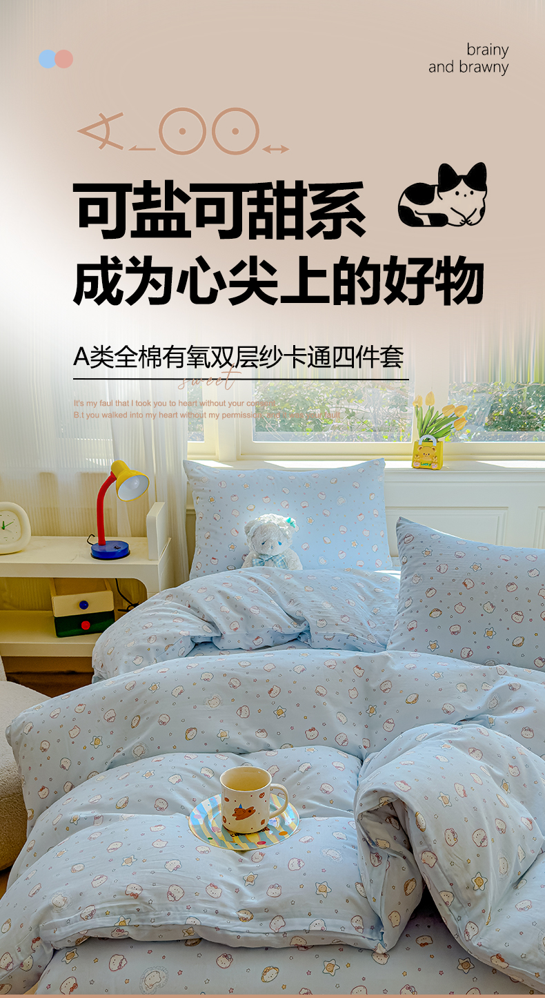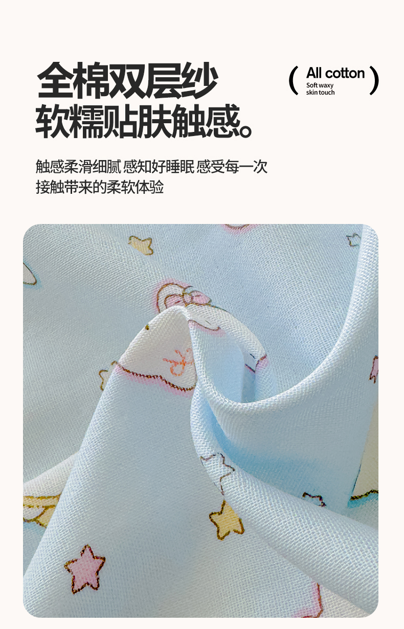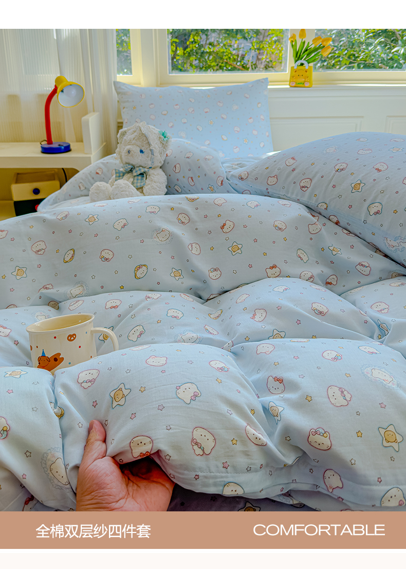 当前位置: 91家纺网 > 商品网购 > 床品套件 > 四件套 > 双层纱四件套 > 感遇家纺 2026春夏新款双层纱全棉纯棉系列四件套-第一批 星星猫