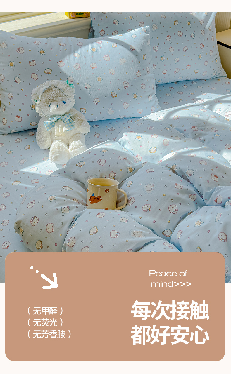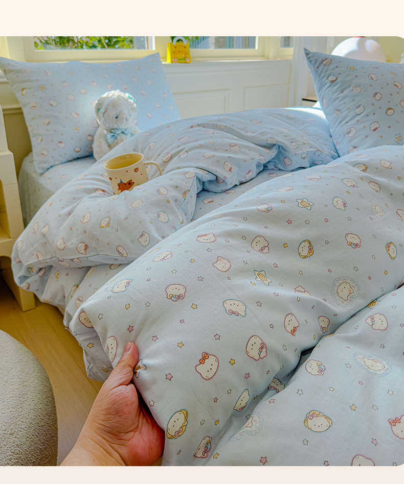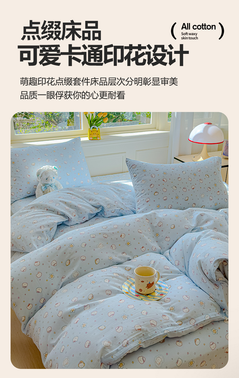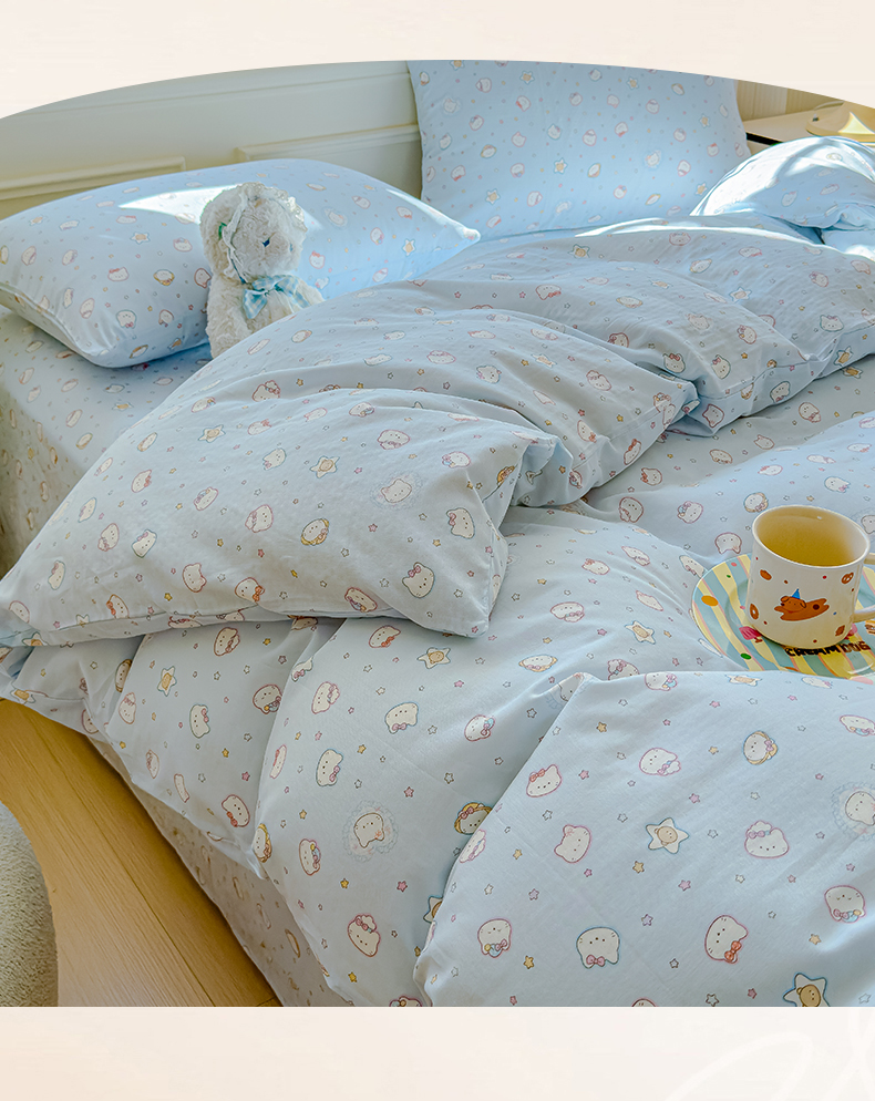 当前位置: 91家纺网 > 商品网购 > 床品套件 > 四件套 > 双层纱四件套 > 感遇家纺 2026春夏新款双层纱全棉纯棉系列四件套-第一批 星星猫