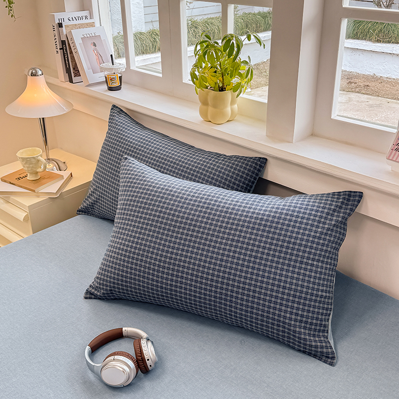 商品名称:梦依依 2026新款全棉色织水洗棉拉链款单品枕套 蓝小格