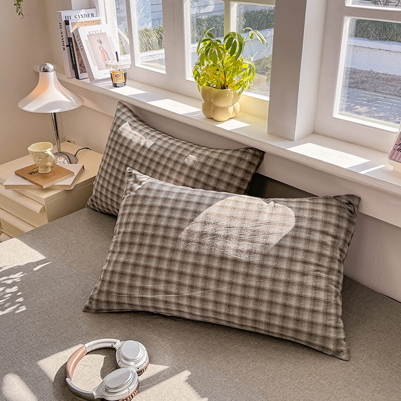 梦依依 2026新款全棉色织水洗棉拉链款单品枕套 蓝小格