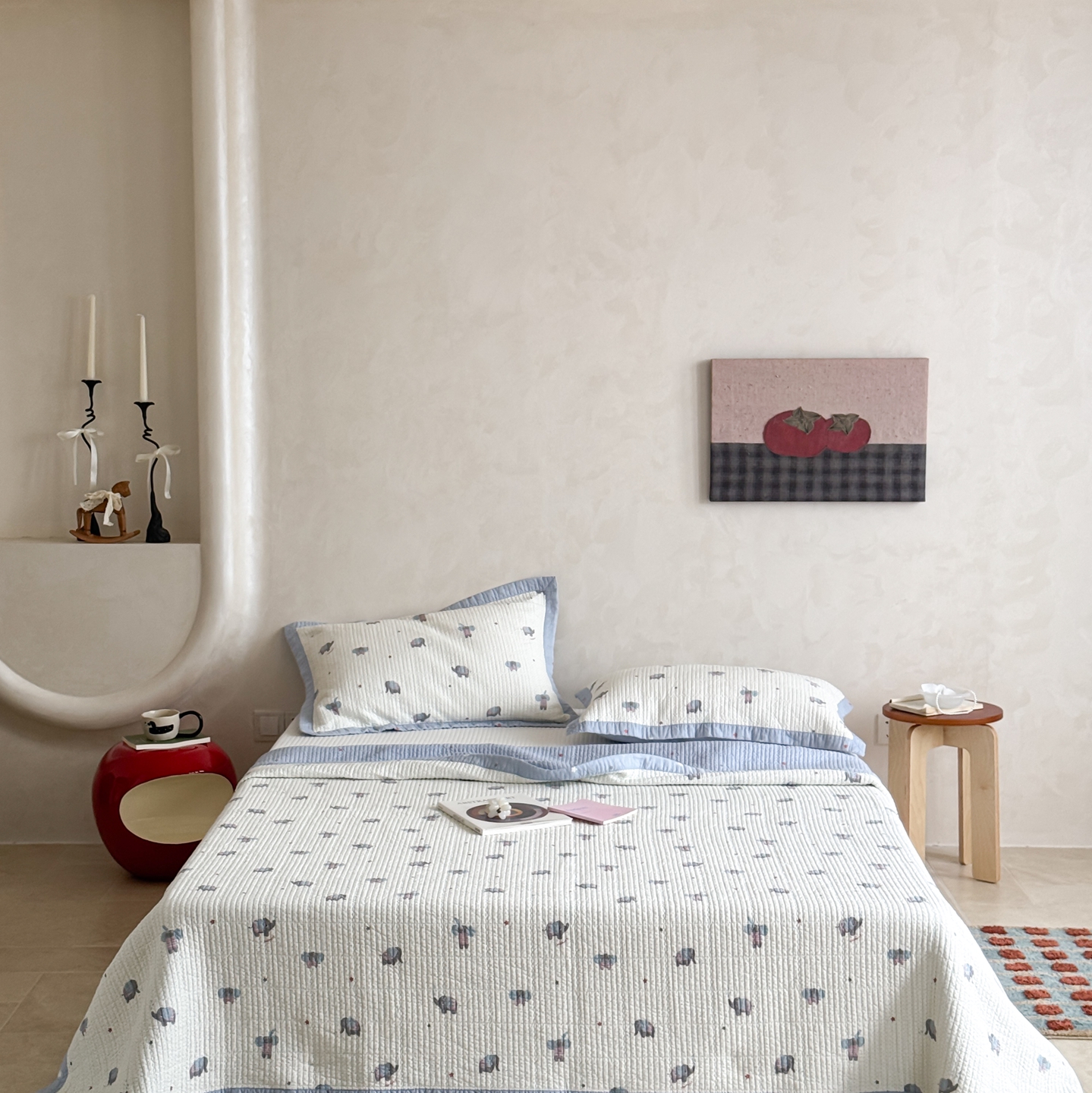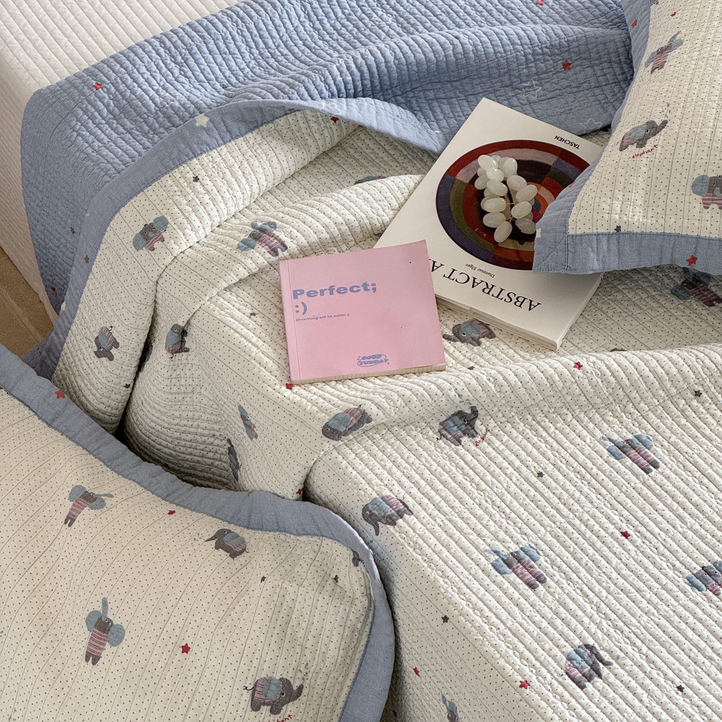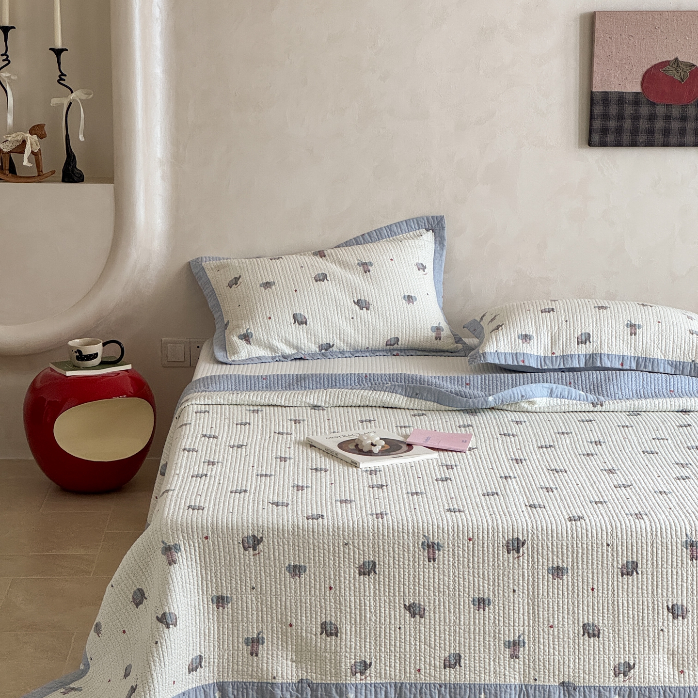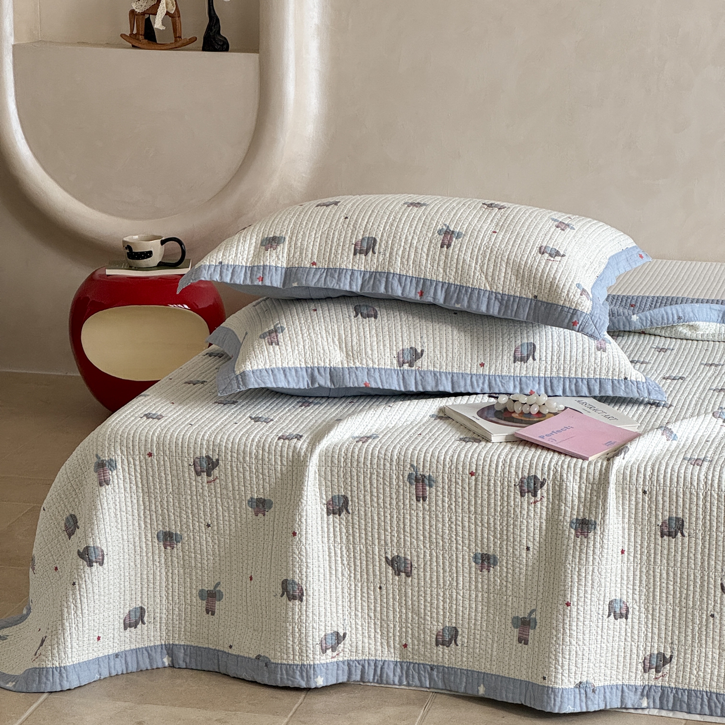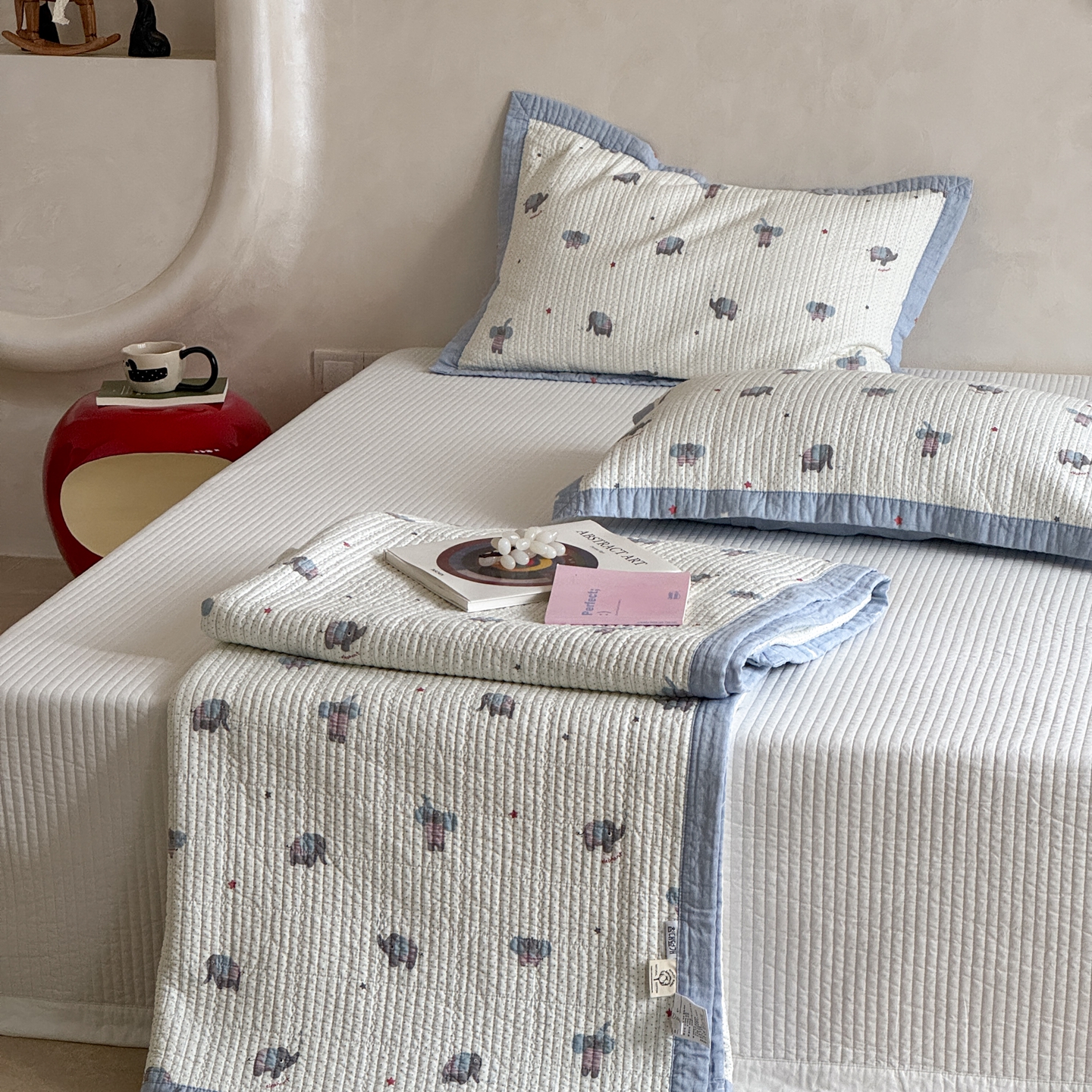 床盖工厂店 2026春夏新款双面100%全棉填充80棉花床盖三件套 跳跳象