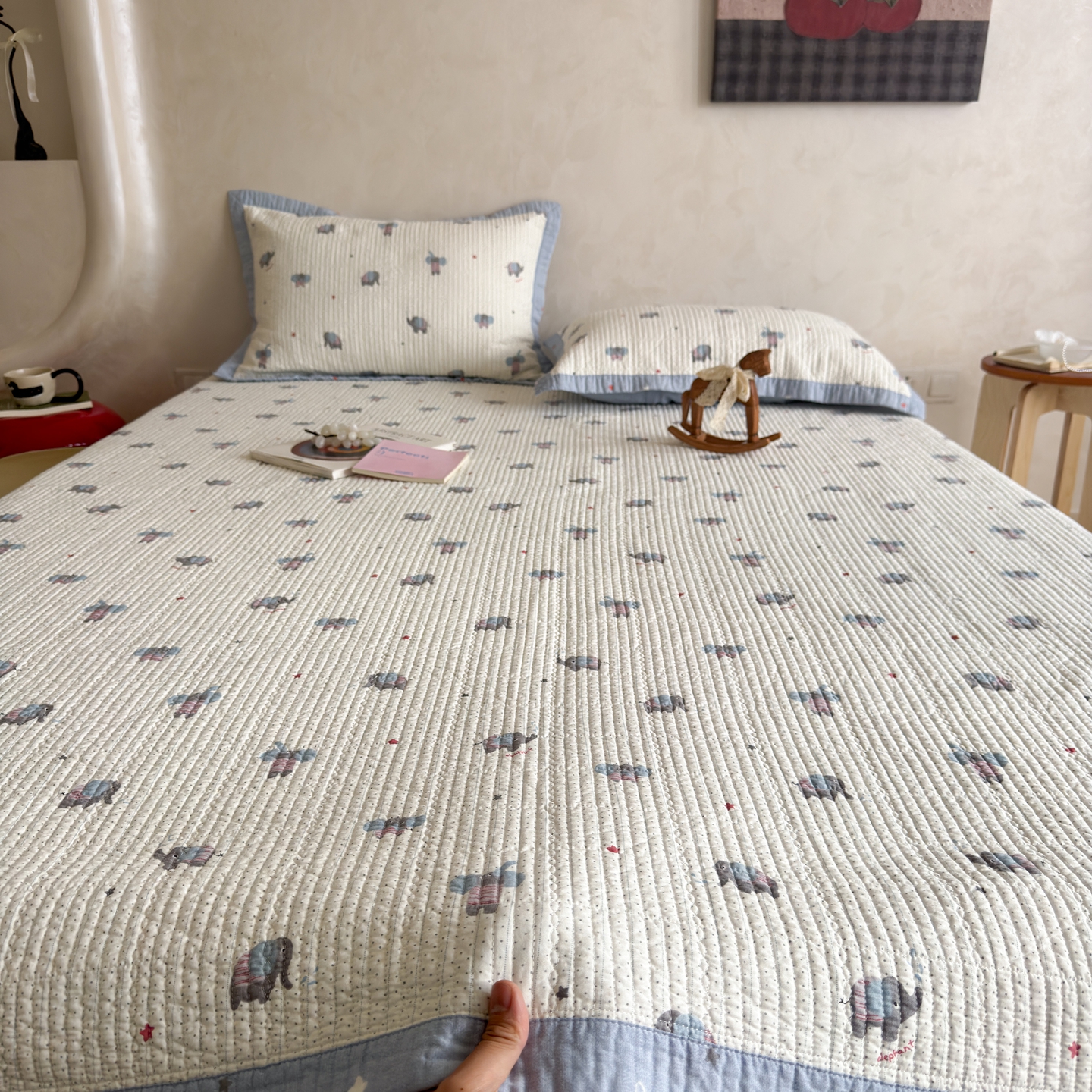 商品名称:床盖工厂店 2026春夏新款双面100%全棉填充80棉花床盖三件套 跳跳象