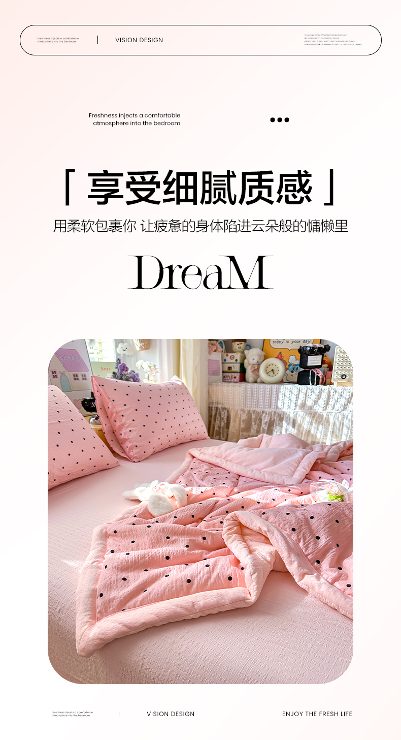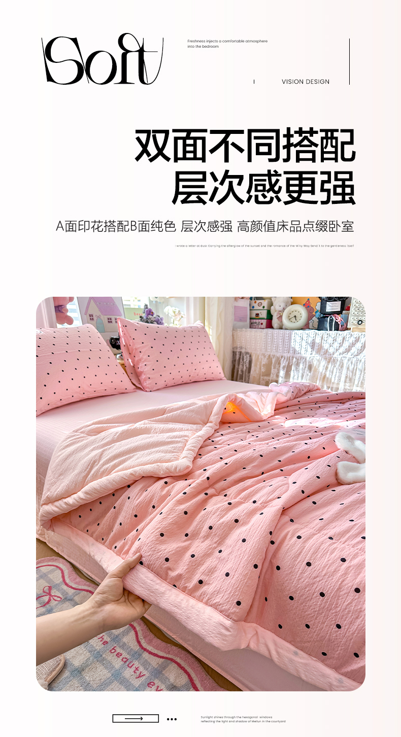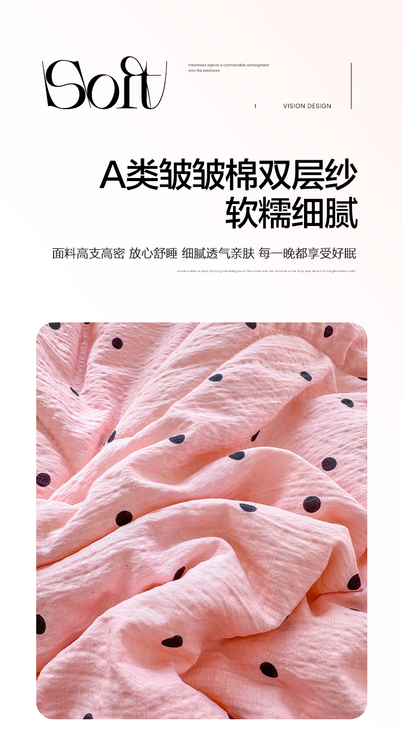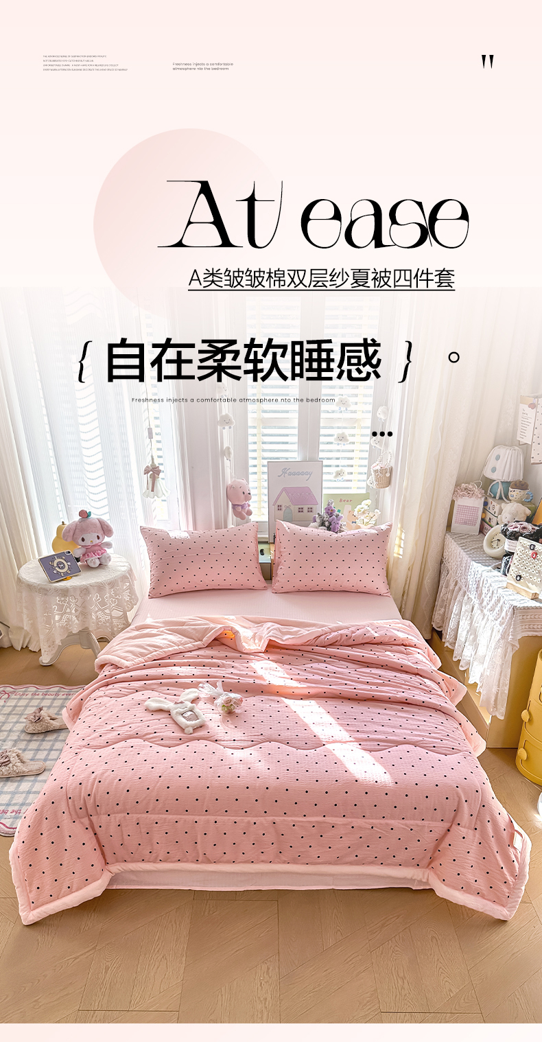 当前位置: 91家纺网 > 商品网购 > 床品套件 > 四件套 > 夏被四件套 > 卡斯诺家纺馆 2026新款皱皱棉双层纱夏被四件套下载文件包含买家秀 波点生活-粉