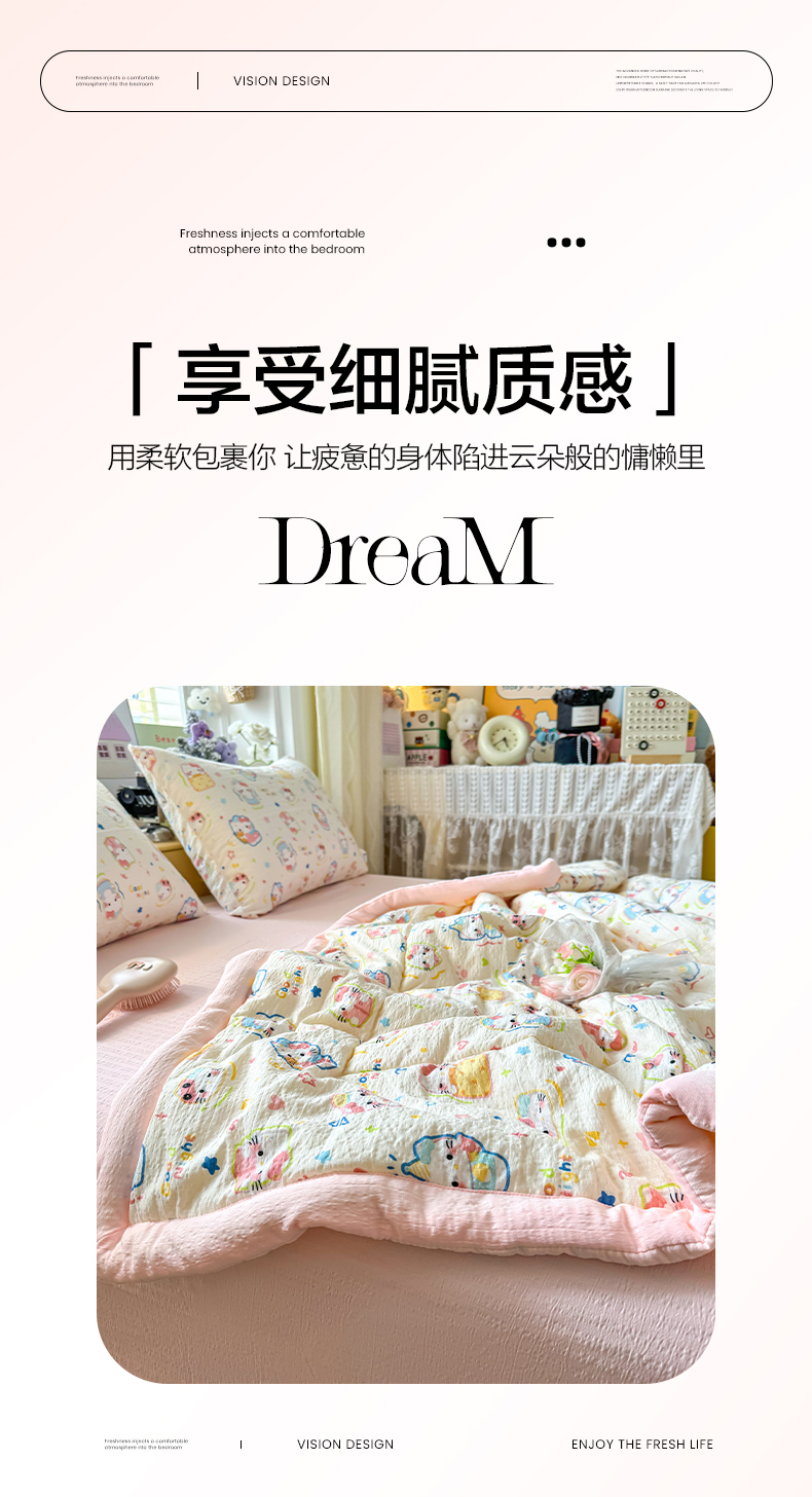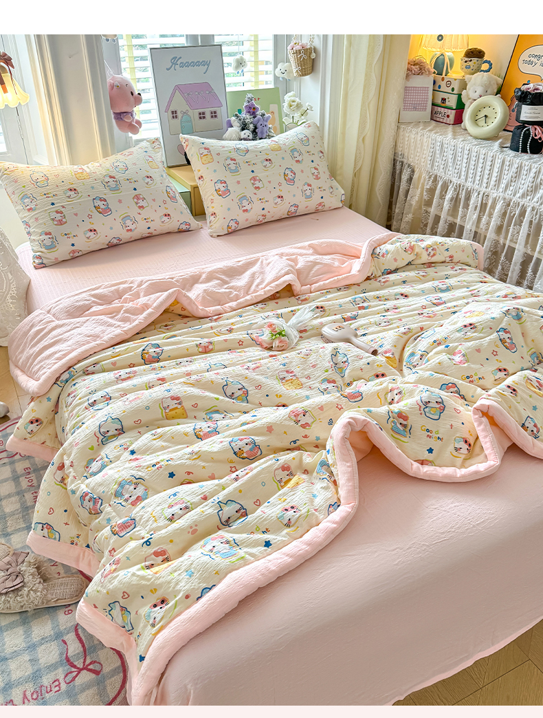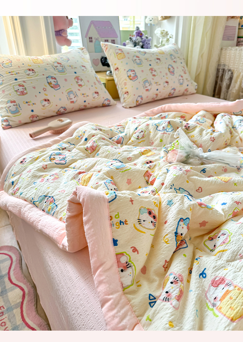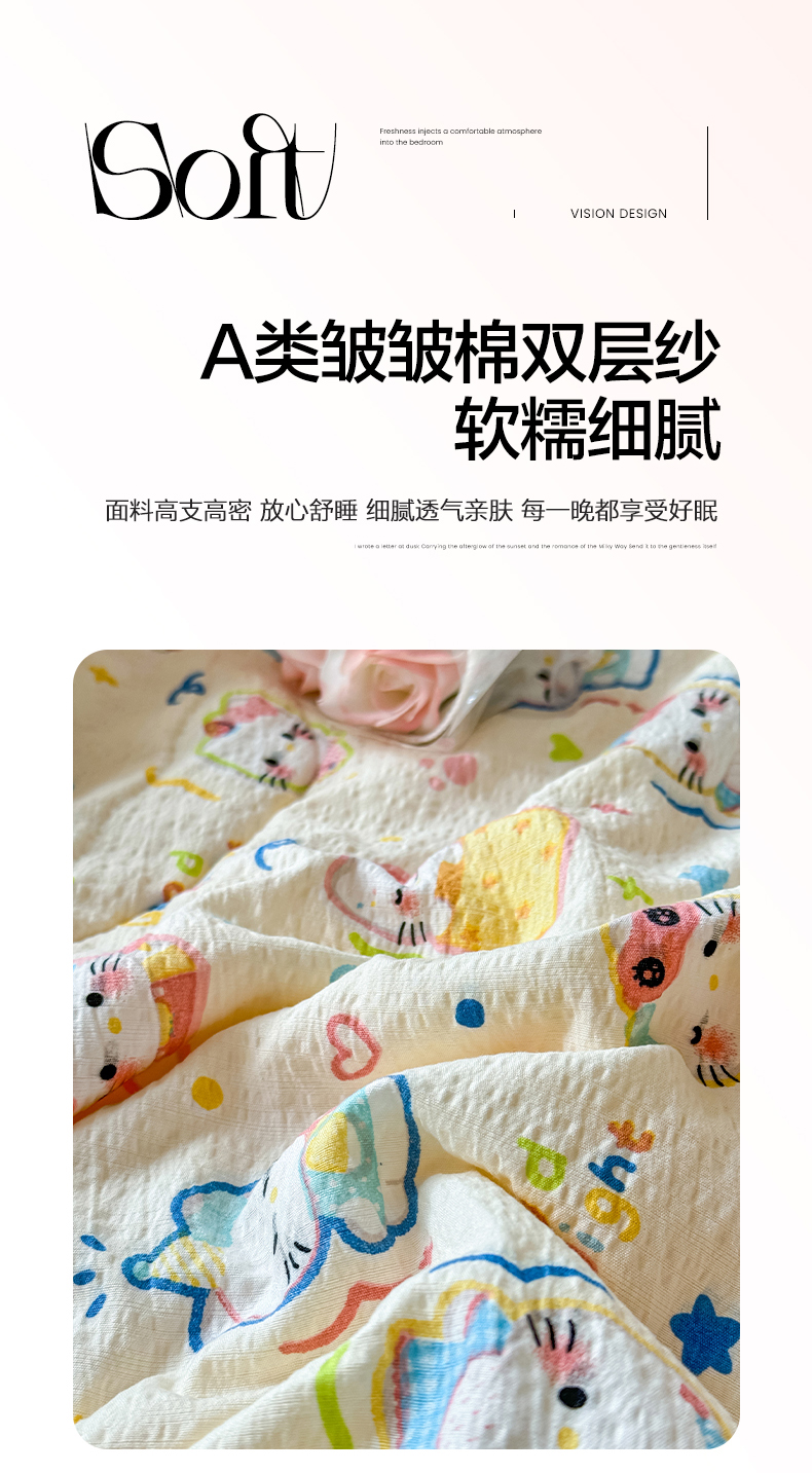当前位置: 91家纺网 > 商品网购 > 床品套件 > 四件套 > 夏被四件套 > 卡斯诺家纺馆 2026新款皱皱棉双层纱夏被四件套下载文件包含买家秀 泡芙猫咪