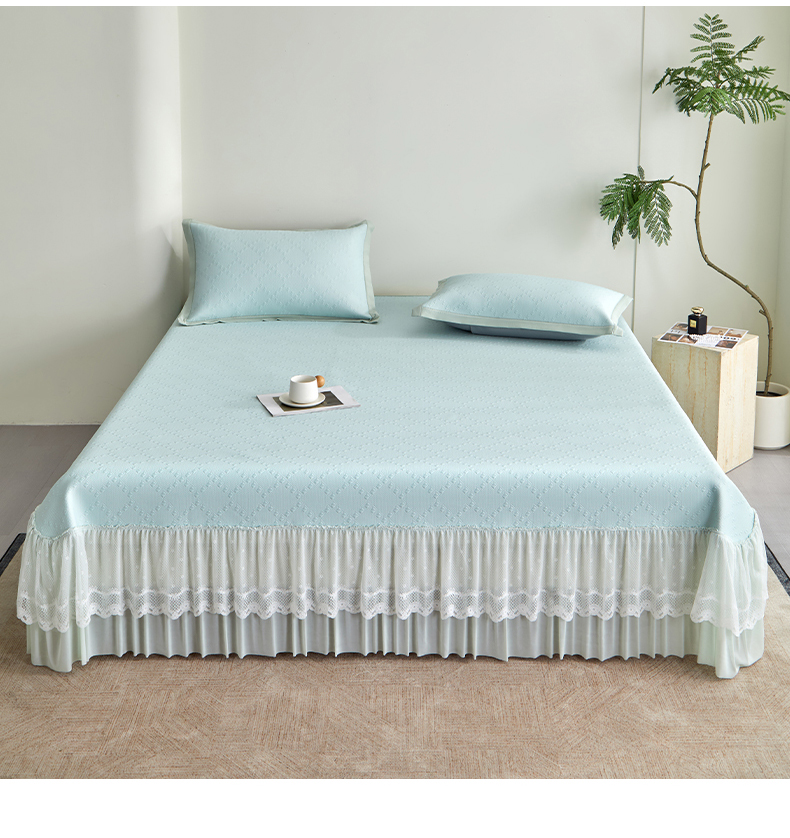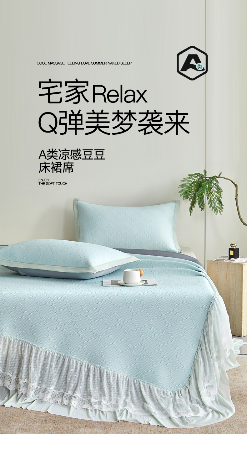瑞禾家纺 2026新款A类凉感豆豆床裙款凉席三件套-系列六 月灰回韵
