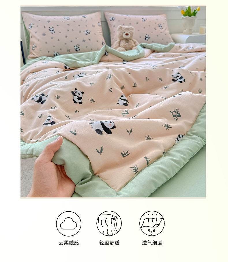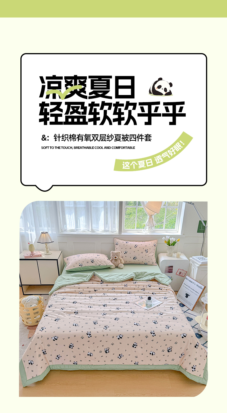 • 91家纺网 家纺一手货源 找家纺 优卡迪家纺馆 2026春夏新款针织棉双层纱夏被夏凉被空调被四件套【下载文件夹包含买家秀】 呢喃