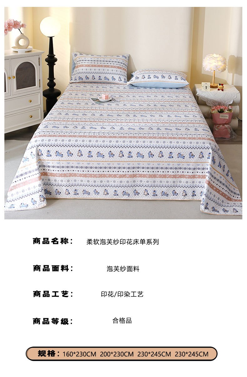 商品名称:北部居 2026新款柔软泡芙纱高克重印花床单单品床单单件 梦回浅溪