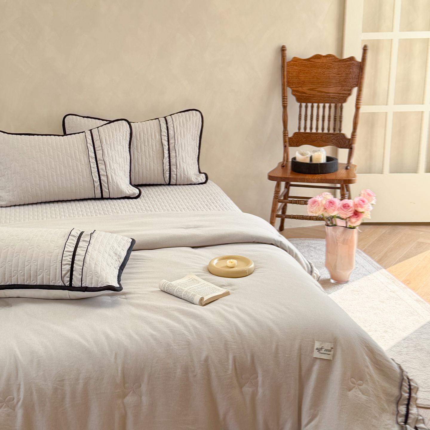 商品名称:寐居家纺 2026新款雨露麻夏被床盖四件套 雨露-奶茶棕