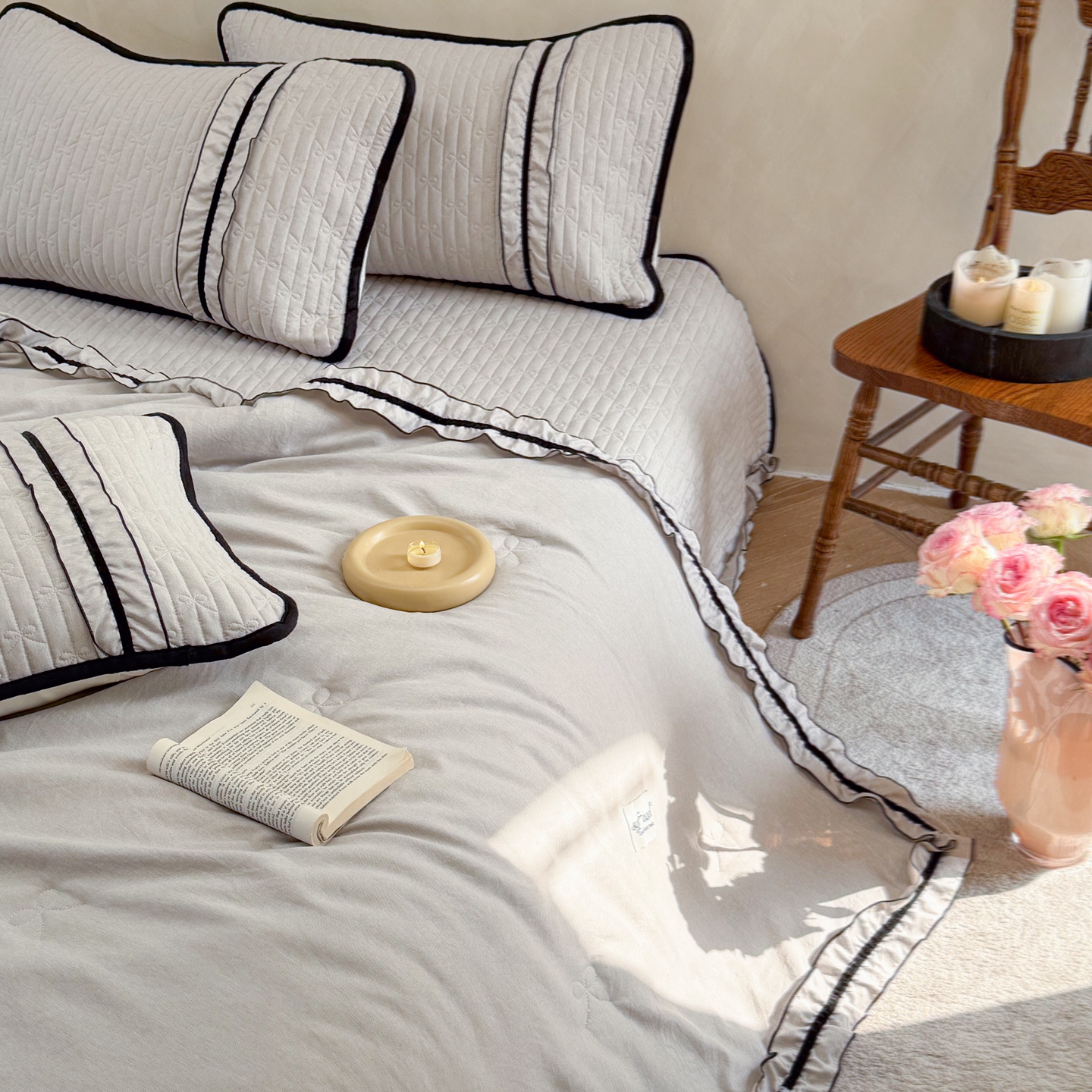 (总)寐居 2023年新款全棉夹棉床笠,低调-灰,格调-咖,优雅-白