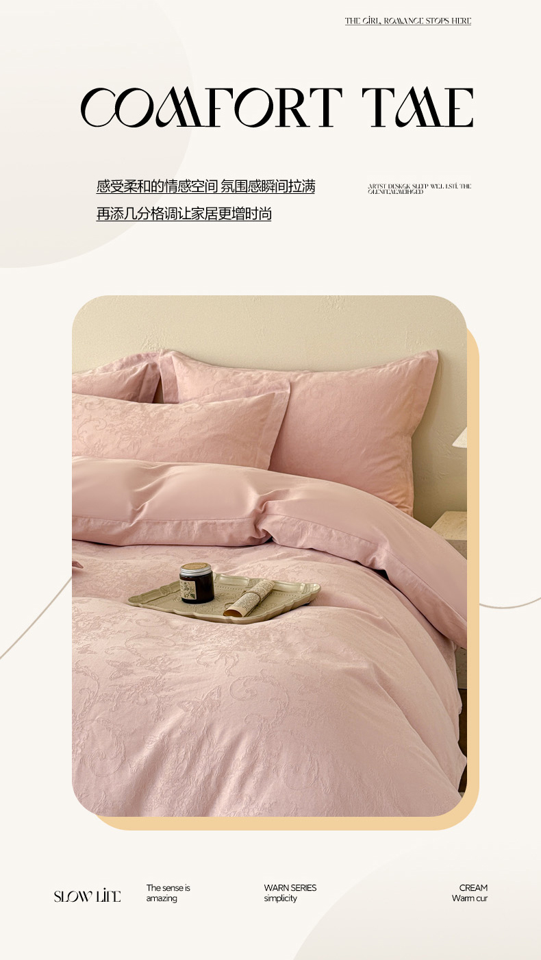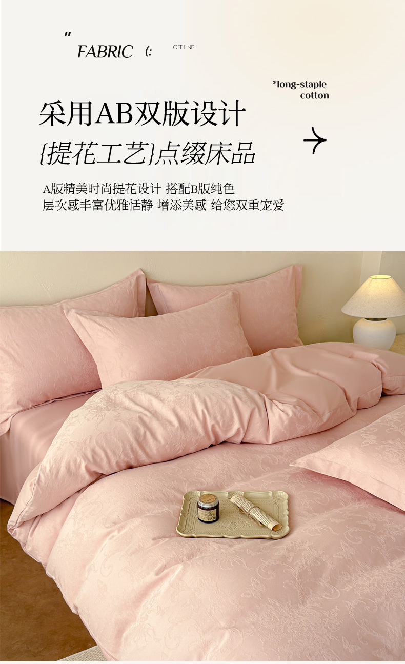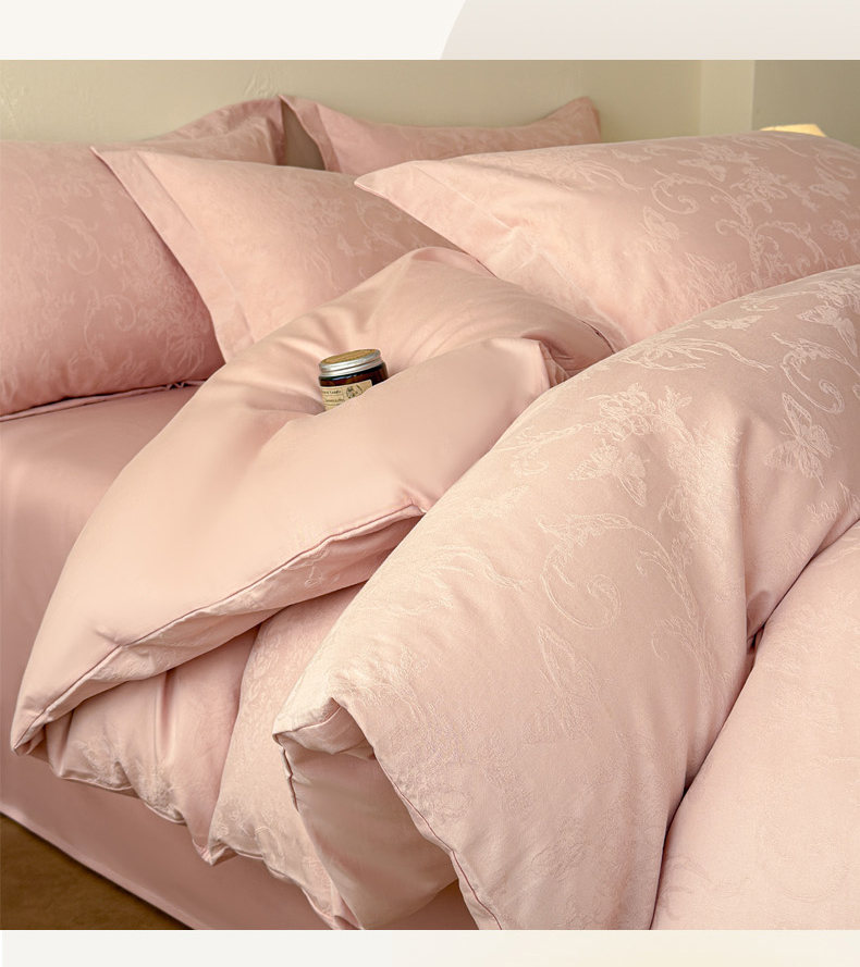 当前位置: 91家纺网 > 商品网购 > 床品套件 > 四件套 > 长绒棉四件套 > 慕尚家纺 2026新款A类60支长绒棉纯棉提花贡缎大提花光泽绸缎感四件套 鸢尾花蝶粉