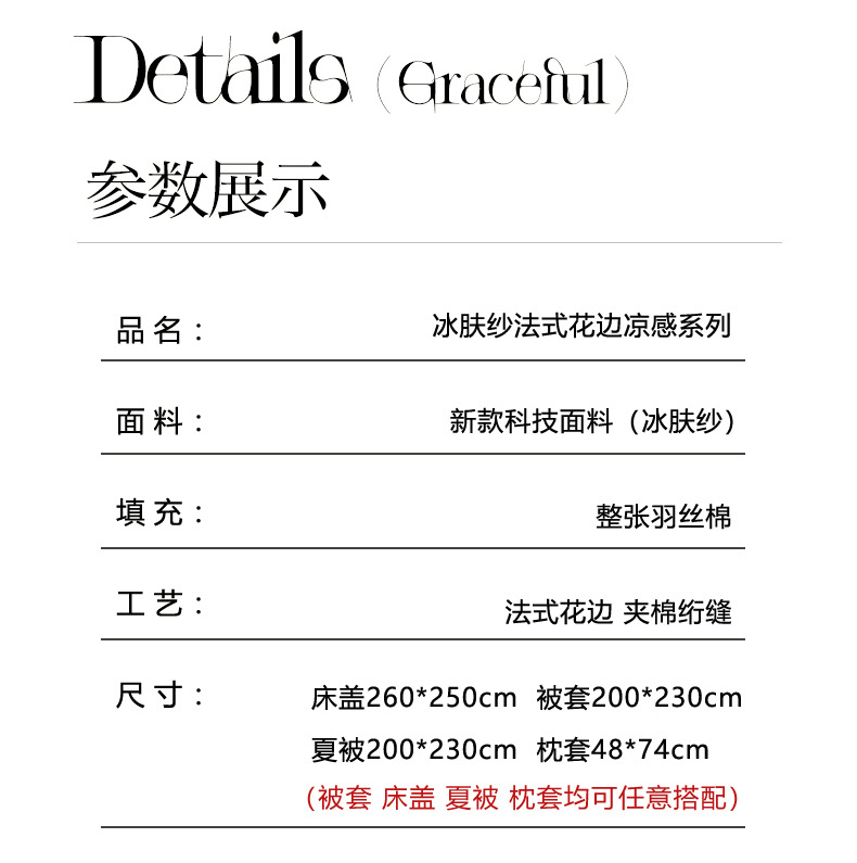 250x260cm单件床盖+200x230cm花边夏被+枕套一对 | ¥108.00 |