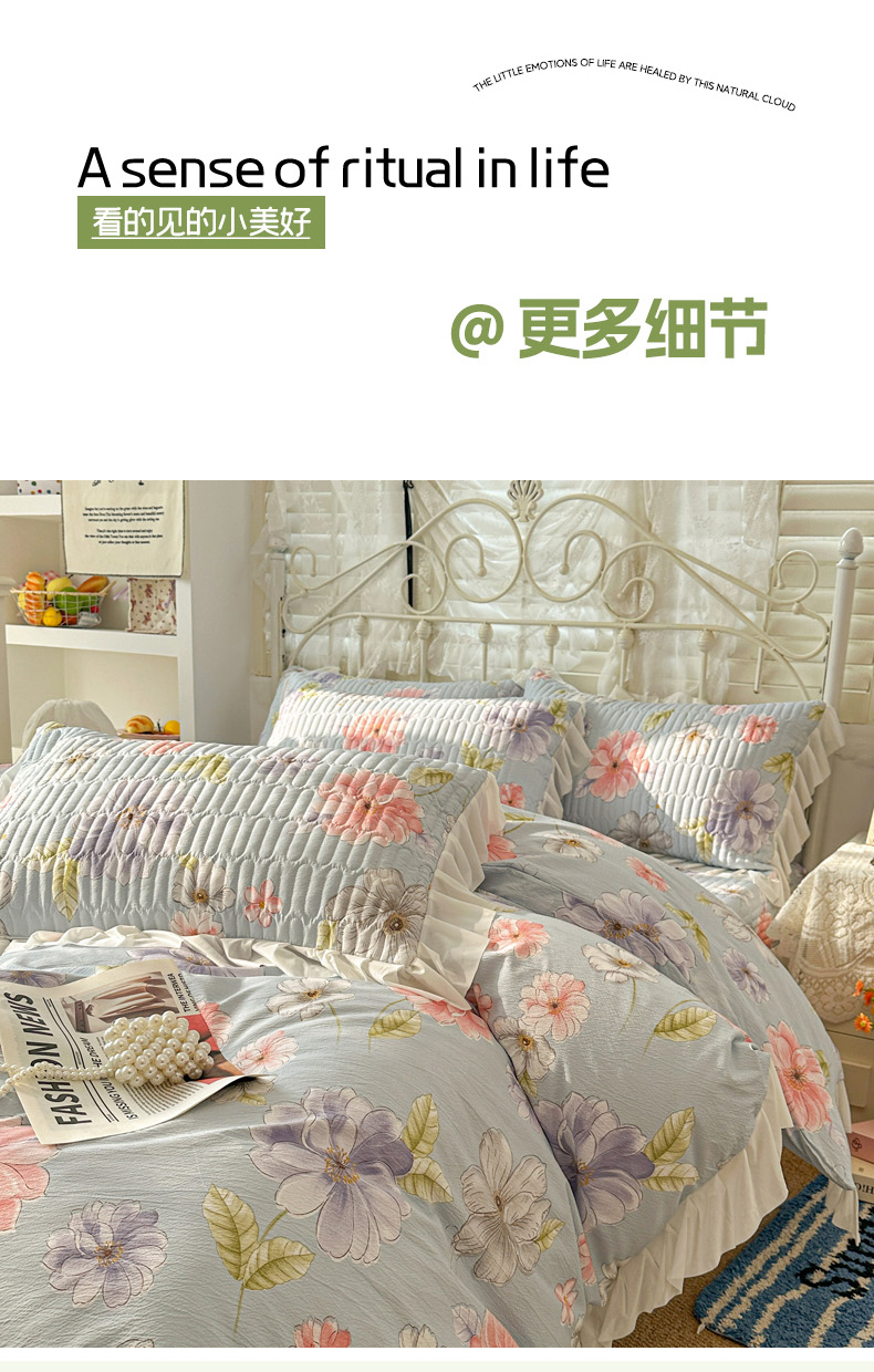 当前位置: 91家纺网 > 商品网购 > 床品套件 > 四件套 > 其它四件套 > 提花大世界 2026新款冰肤纱法式花边凉感夏被夏凉被空调被被套凉席三件套床盖夹棉四件套 紫雾郁金香