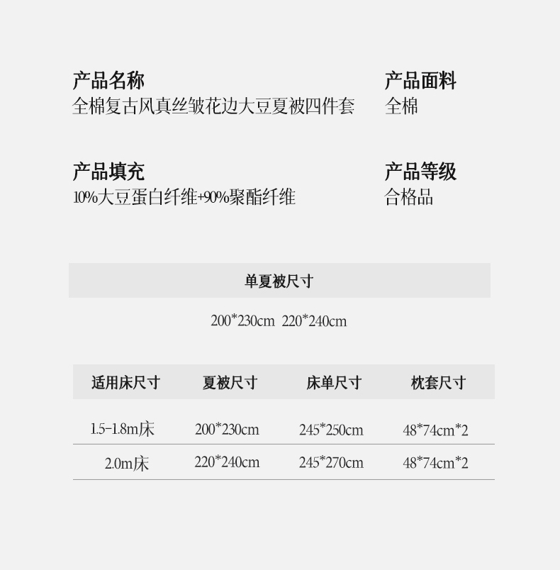 200*230cm床单款夏被四件套 | ¥155.00 |