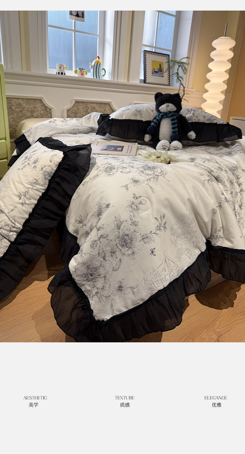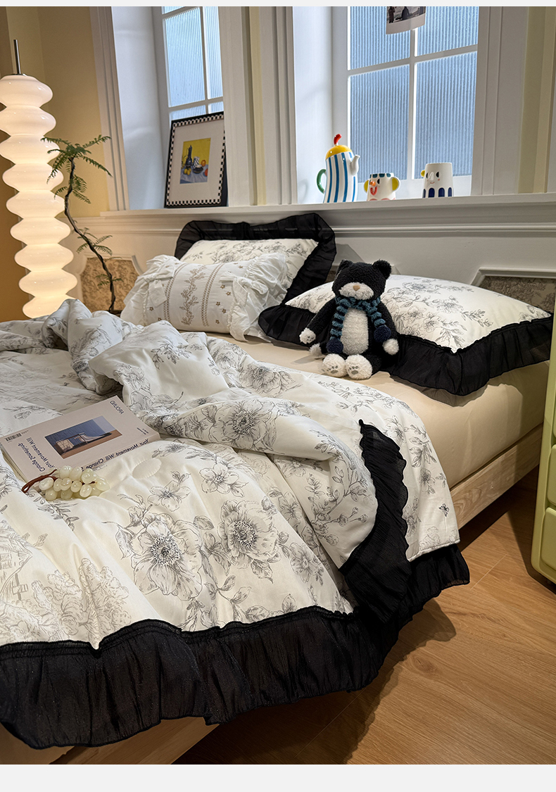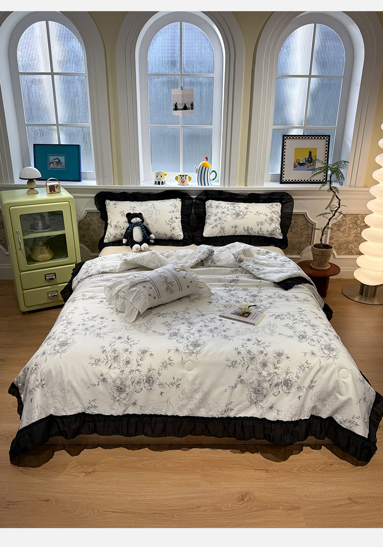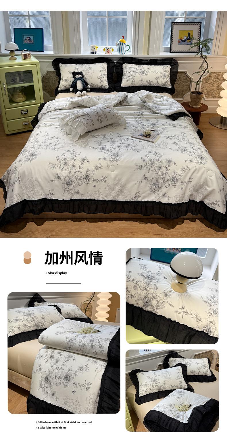 当前位置: 91家纺网 > 商品网购 > 床品套件 > 四件套 > 其它四件套 > (总)蓝邻家纺 2026新款全棉复古风真丝皱花边夏被夏被四件套