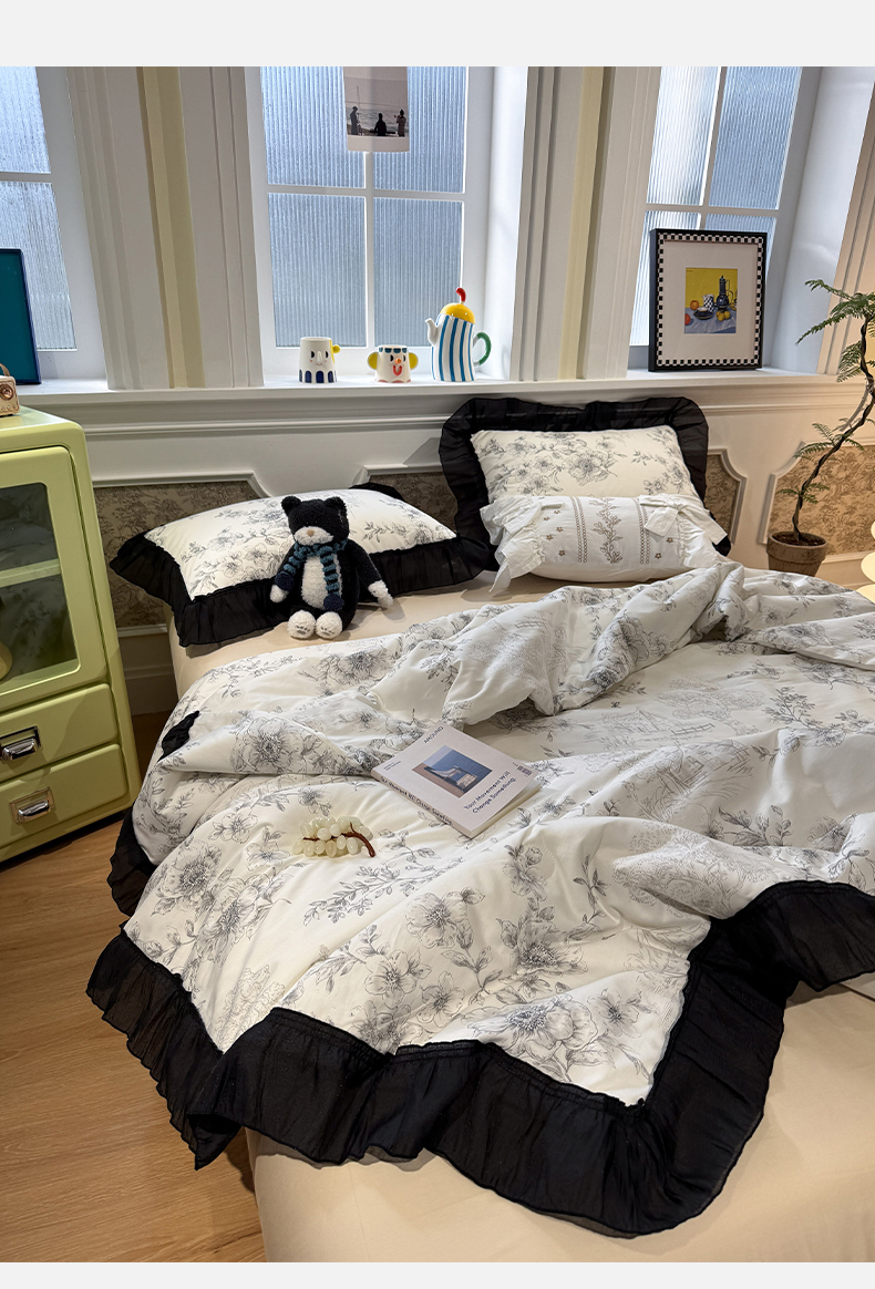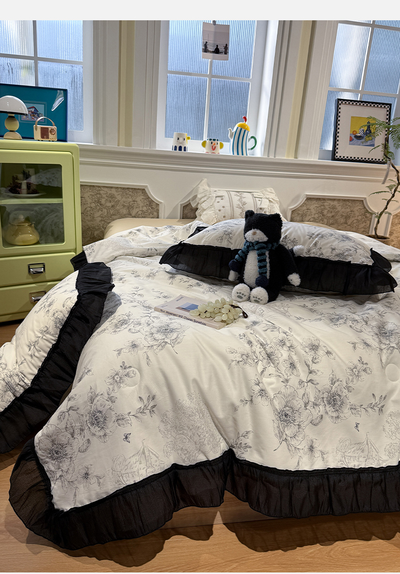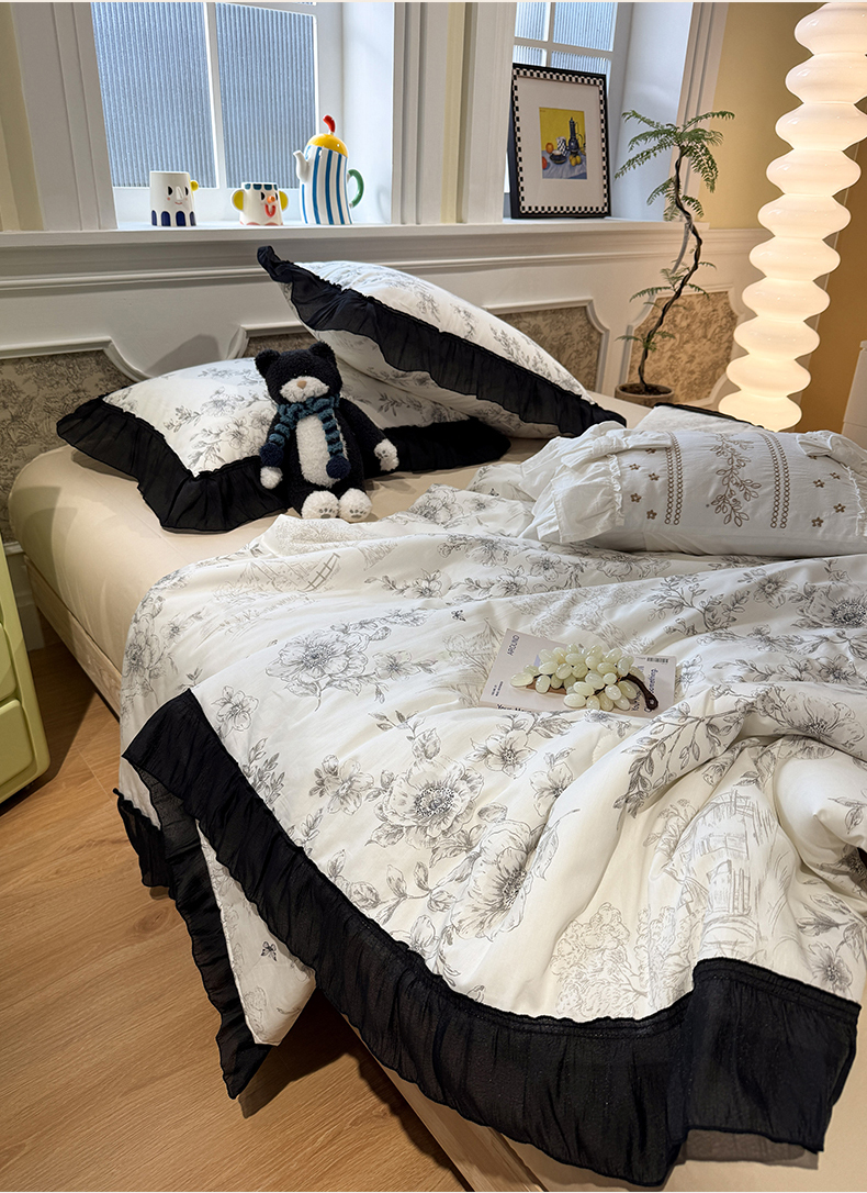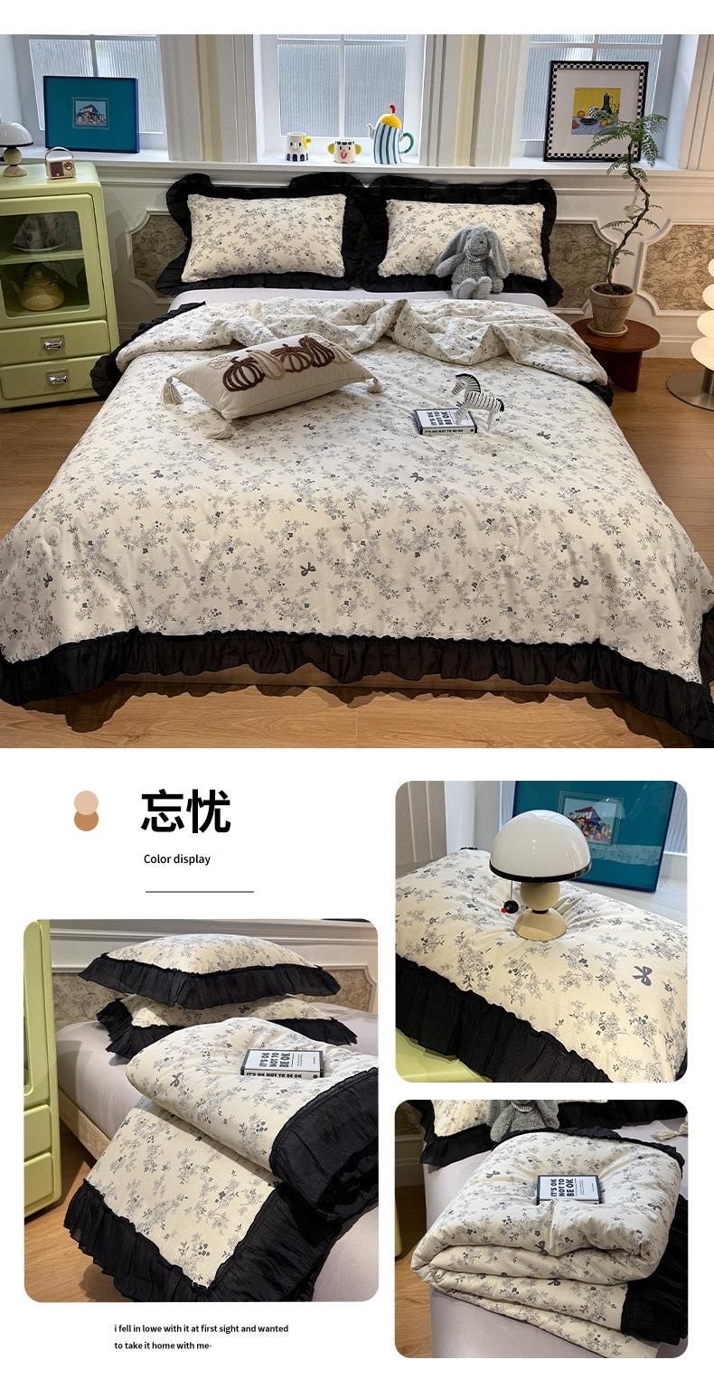 当前位置: 91家纺网 > 商品网购 > 床品套件 > 四件套 > 其它四件套 > (总)蓝邻家纺 2026新款全棉复古风真丝皱花边夏被夏被四件套