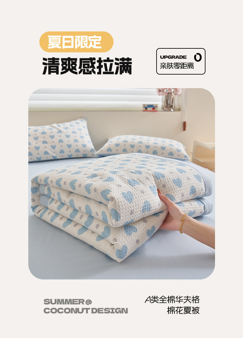 • 91家纺网 家纺一手货源 找家纺 简如 2026新款里外全棉华夫格夏凉被四件套 麦香