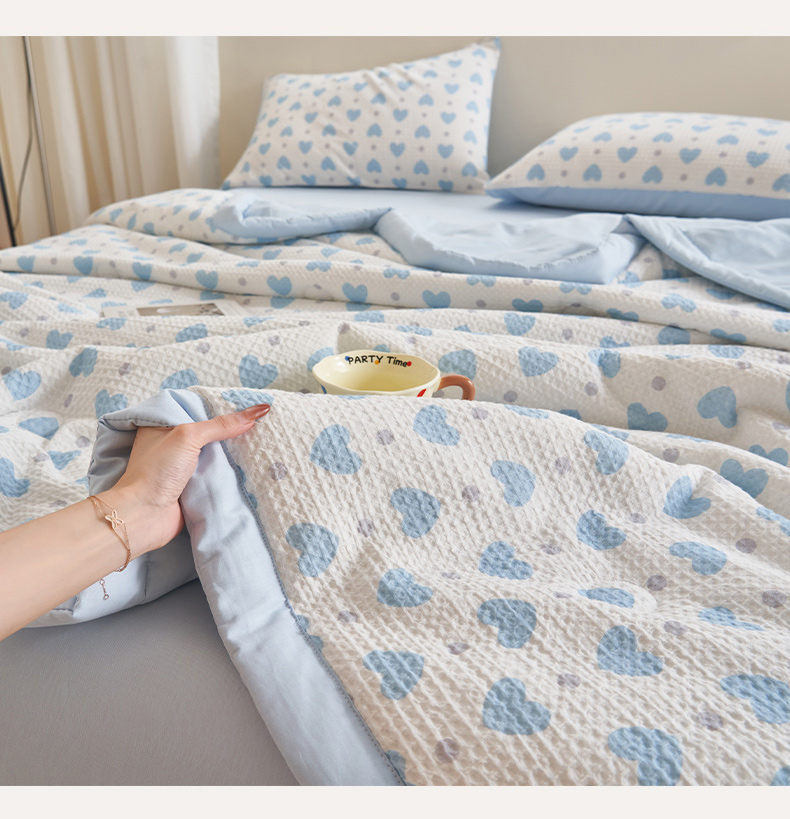 • 91家纺网 家纺一手货源 找家纺 (总)简如 2026新款全棉色织提花里外全棉夏凉被四件套,爱心-兰,柏锦-蓝,柏锦-玉,柏锦-紫,爱心-粉