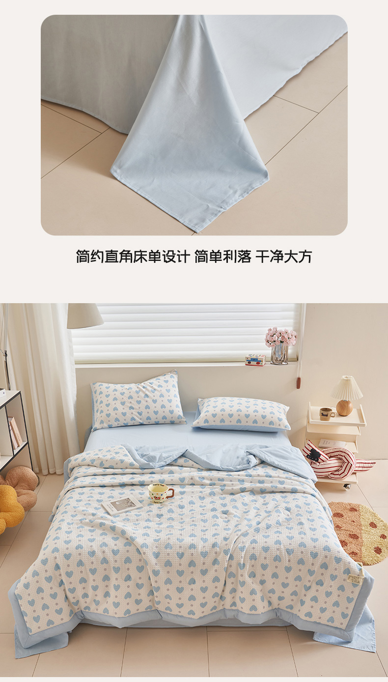(总)简如 2026新款全棉色织提花里外全棉夏凉被四件套,爱心-兰,柏锦-蓝,柏锦-玉,柏锦-紫,爱心-粉