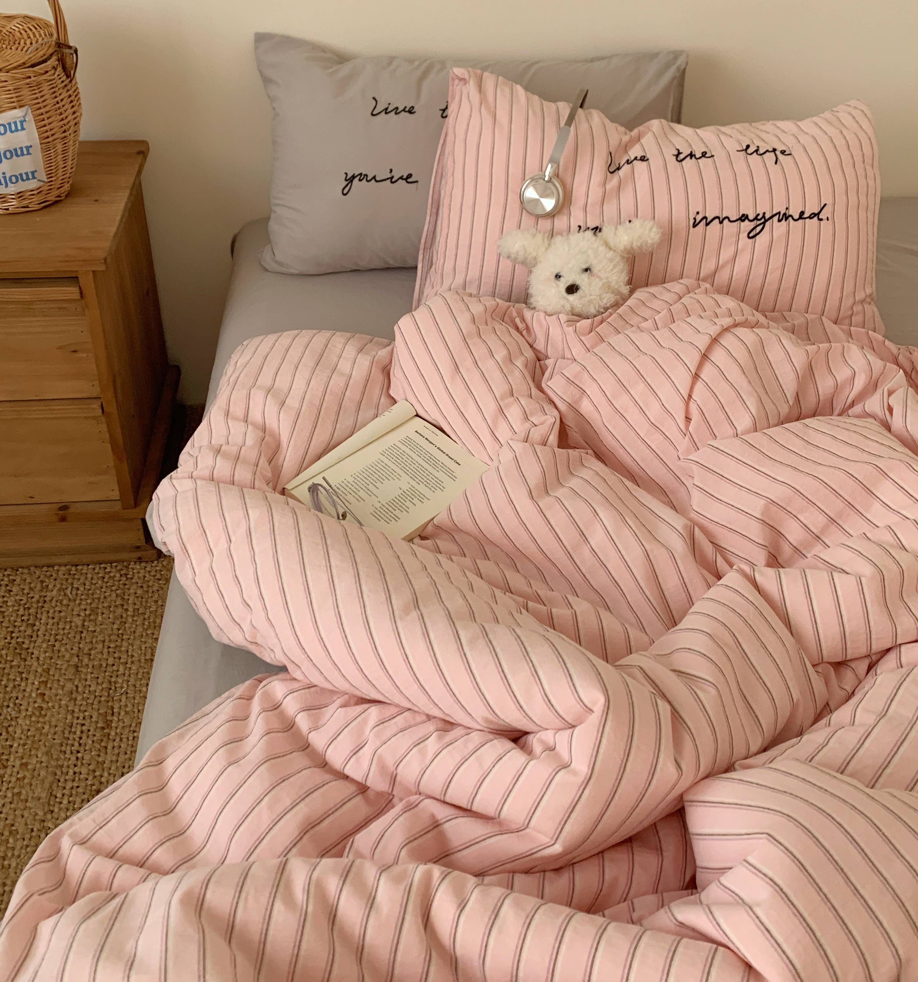 当前位置: 91家纺网 > 商品网购 > 床品套件 > 四件套 > 全棉普通四件套 > 桃喜 2026春夏全棉新品色织水洗棉条纹博主ins风四件套学生三件套(会员-5) 蓝调可可