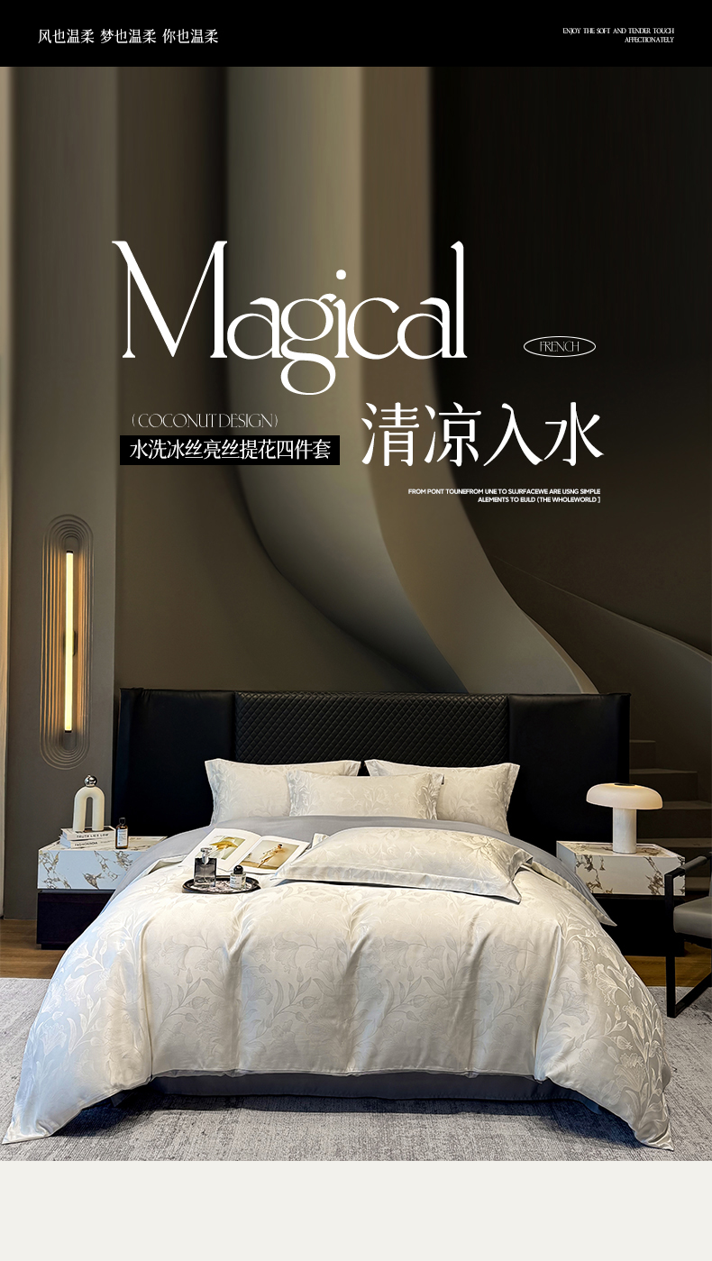 当前位置: 91家纺网 > 商品网购 > 床品套件 > 四件套 > 化纤普通四件套 > 奥汀洛家纺 2026春夏新款水洗冰丝亮丝提花四件套 蔷薇-驼