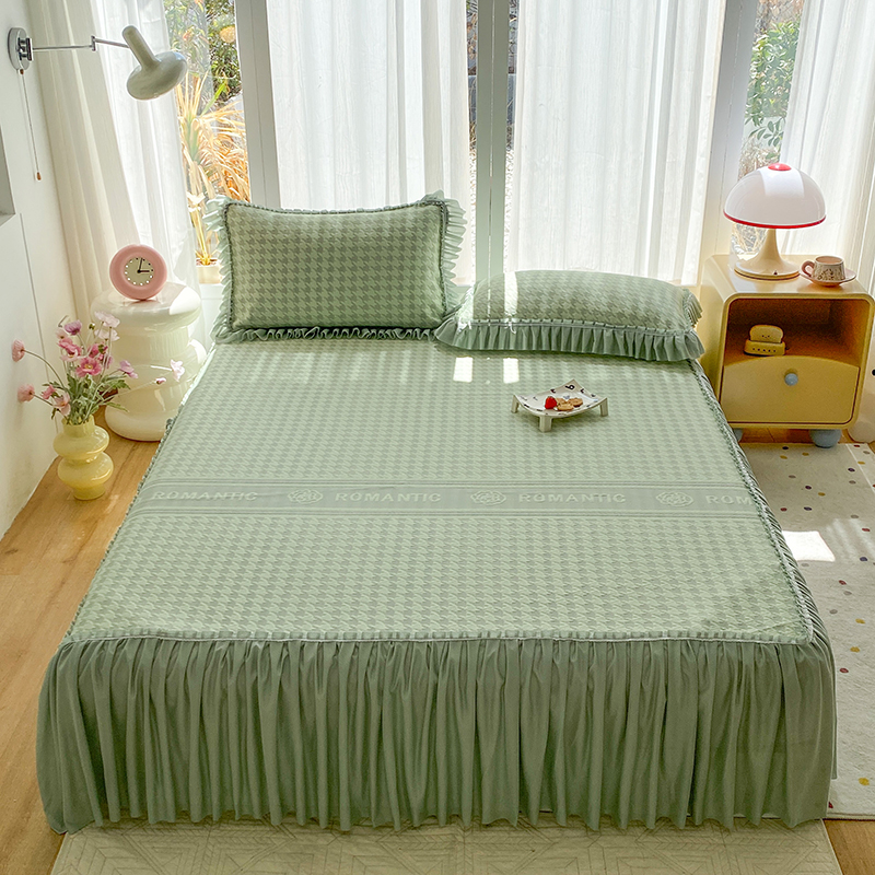 七里香 2026新款千鸟阁凉豆豆3D冰豆豆床裙款凉席三件套 华夫格-果绿