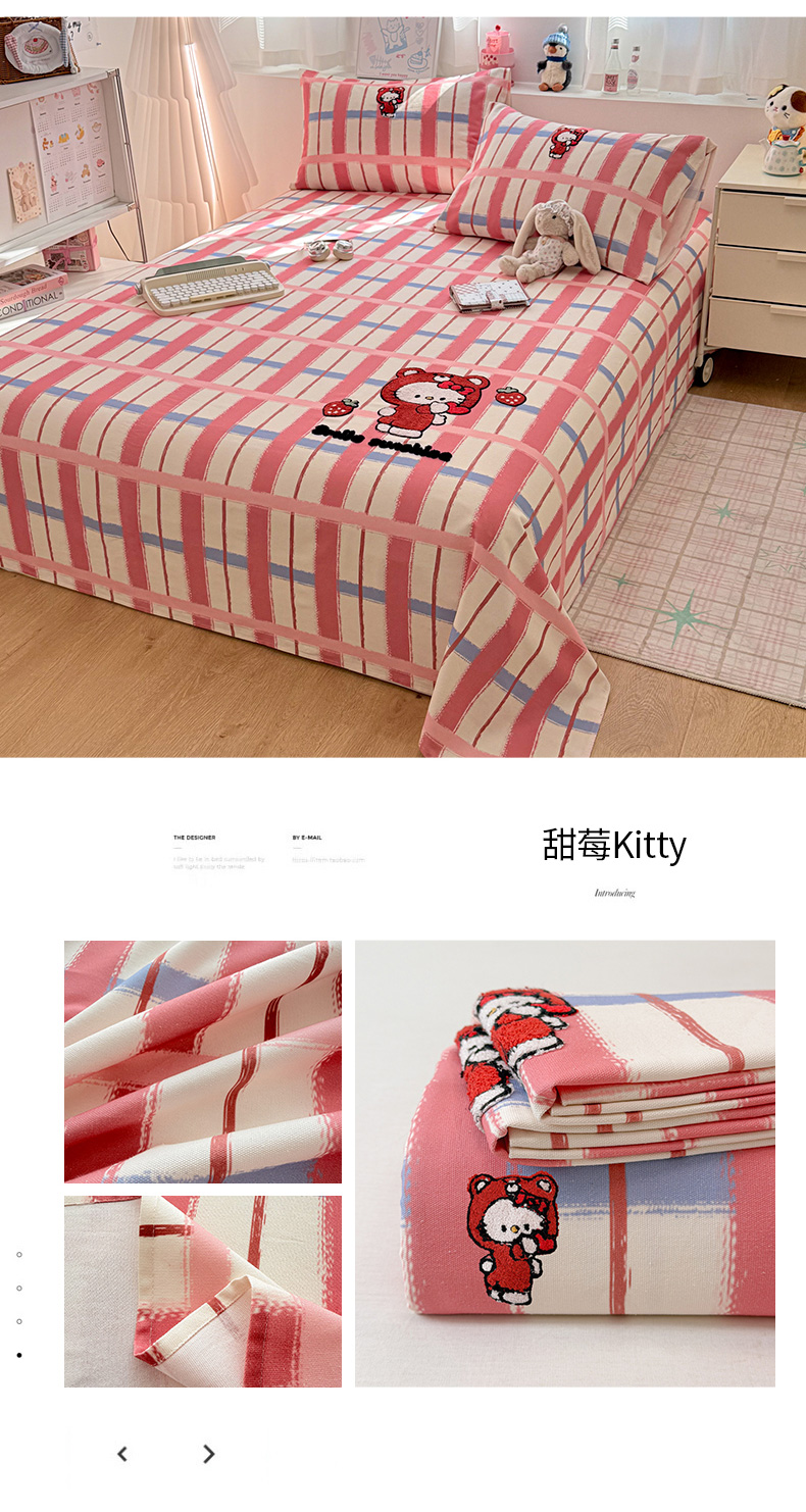 • 91家纺网 家纺一手货源 找家纺 (总)雅萱家纺 2026新款全棉老粗布毛巾绣床单,彩条甜梦,Cute Luck四小只,粉紫格幸运猫,蓝棕条纹狗,青柠波点奶兔,软萌奶猫,甜莓Kitty,条纹软熊,星愿独角小马,组合图
