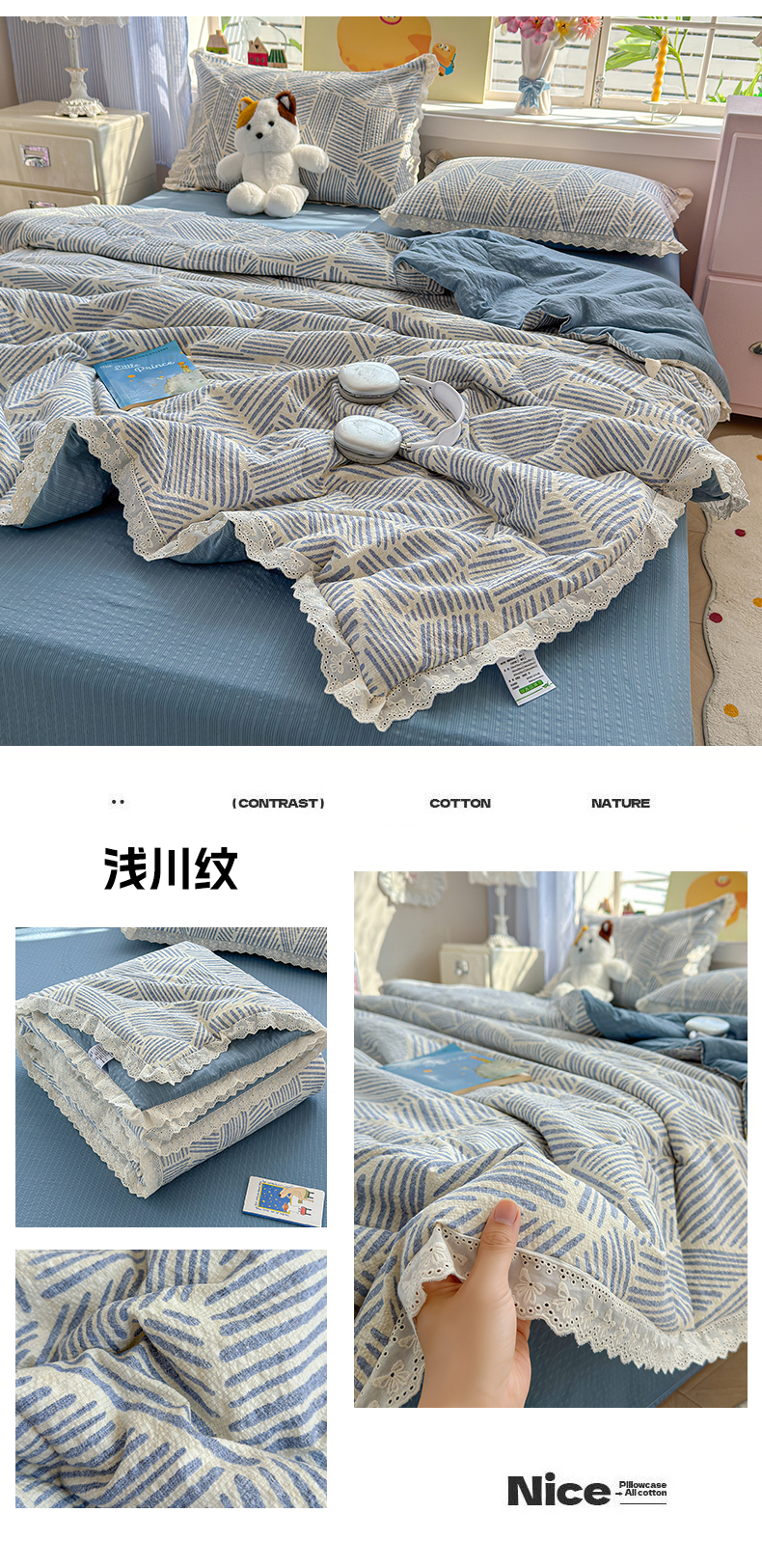 (总)弗苓家纺 2026新款高克重泡芙棉花边款夏被夏凉被空调被四件套小红书推荐-风格一