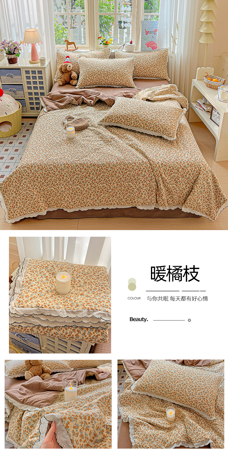 禾沐 2026新款云感泡芙纱全棉蕾丝花边款夏被四件套 若梦