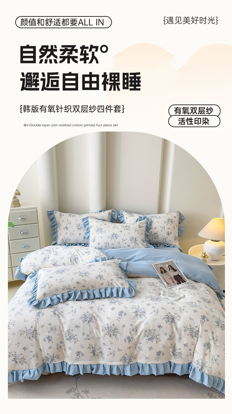 当前位置: 91家纺网 > 商品网购 > 床品套件 > 四件套 > 其它四件套 > 晚爱家纺(原晚安家居) 2026韩版花边四件套 有氧针织双层纱天竺棉超柔小清新四件套 熊宝宝