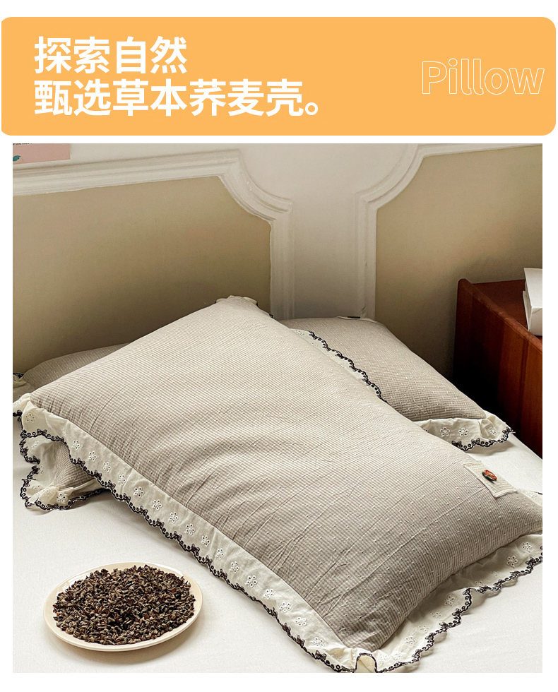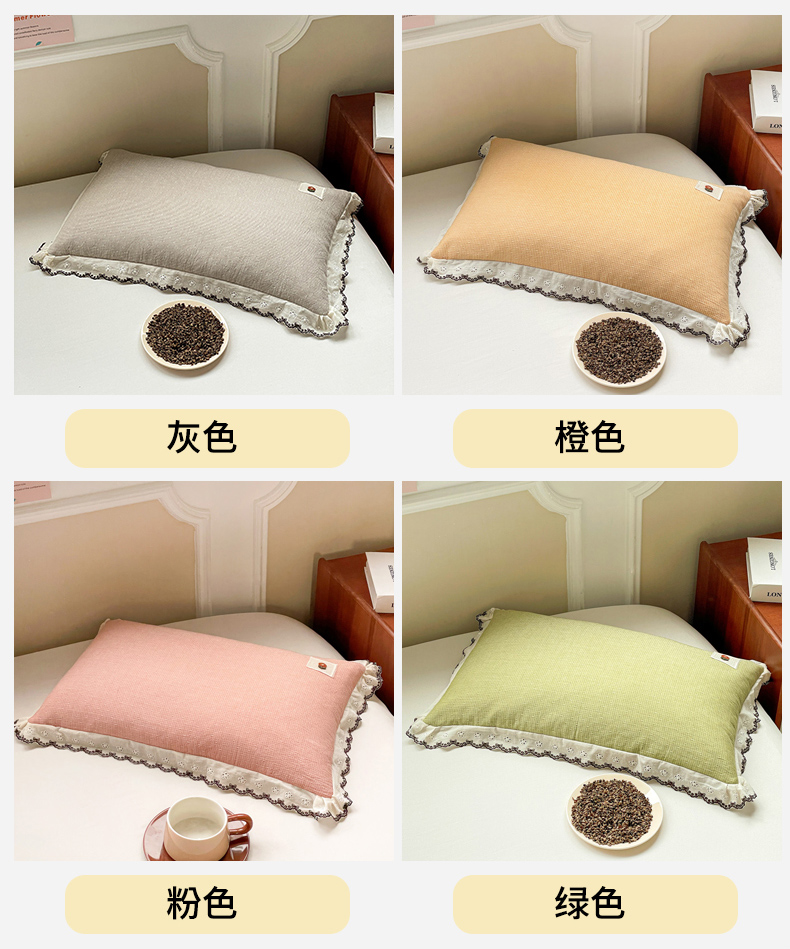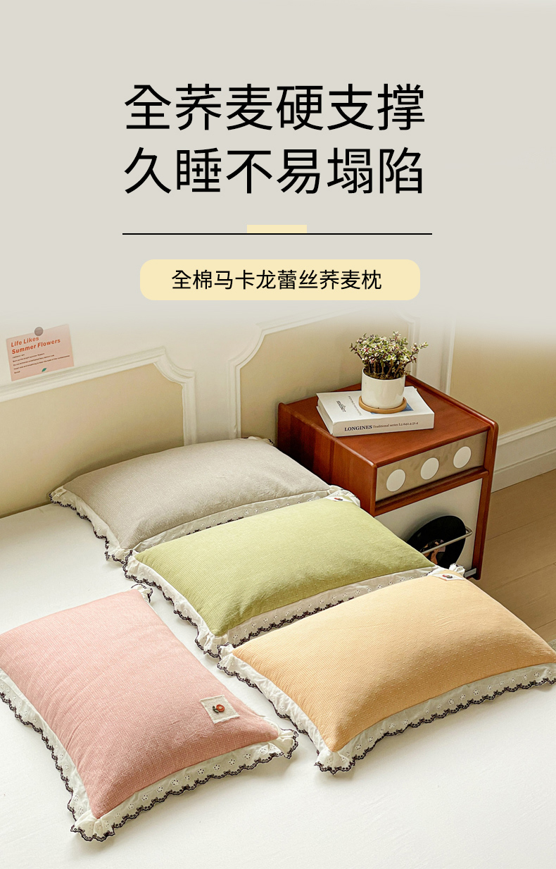 商品名称:(总)梦叶草 2026新款全棉马卡龙蕾丝荞麦枕法式风枕枕头枕芯