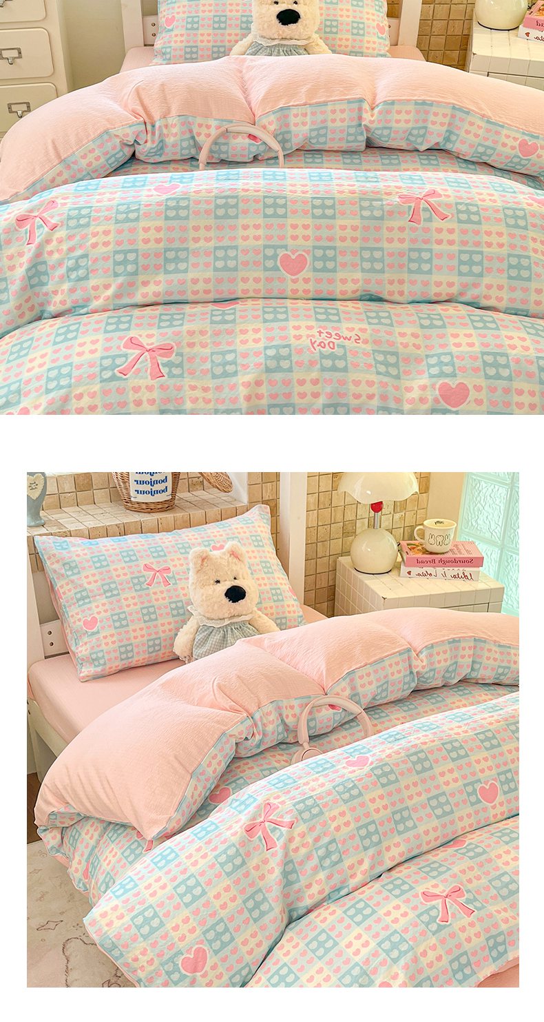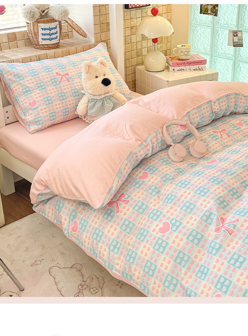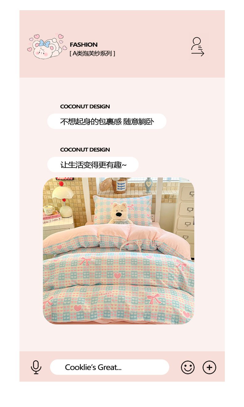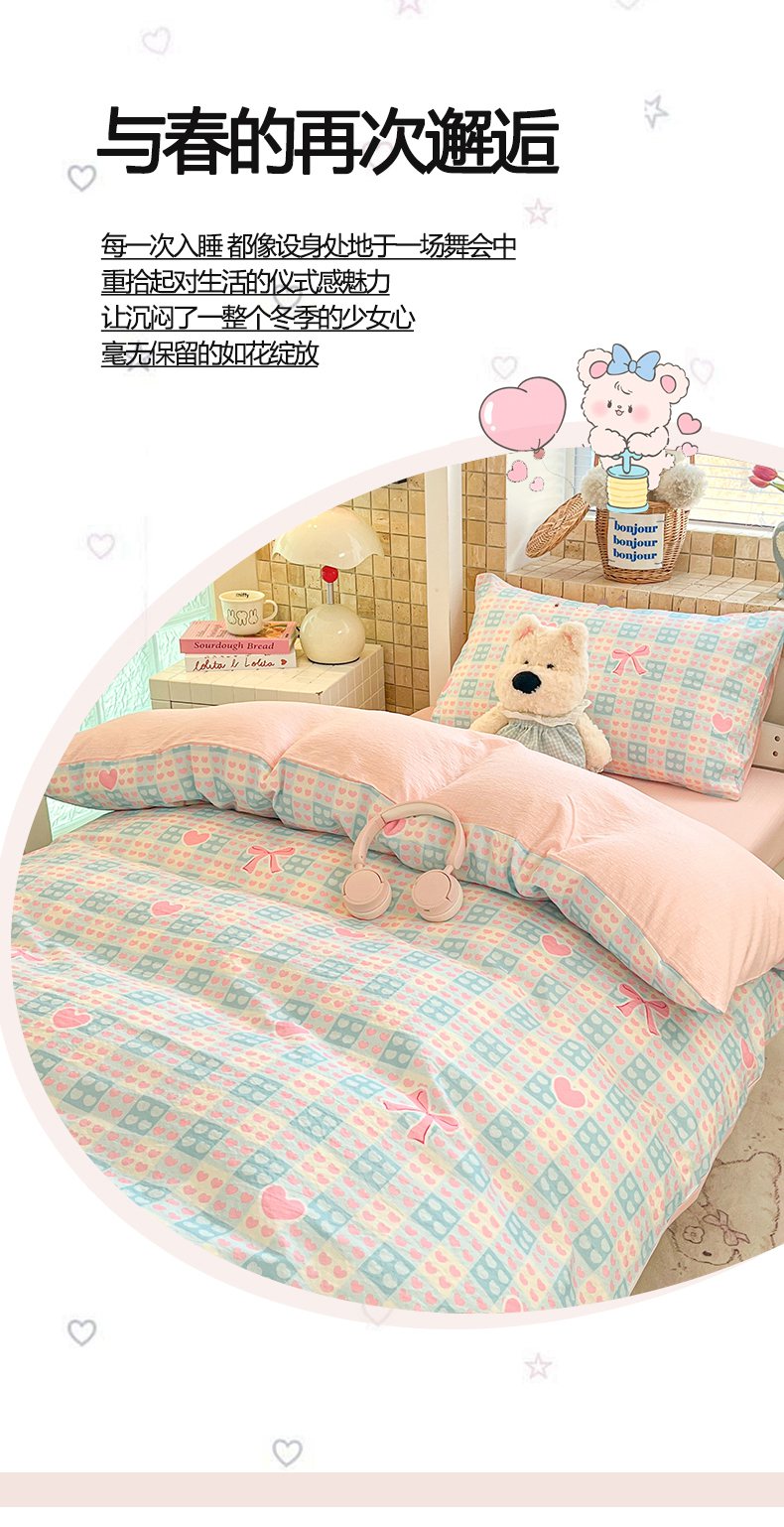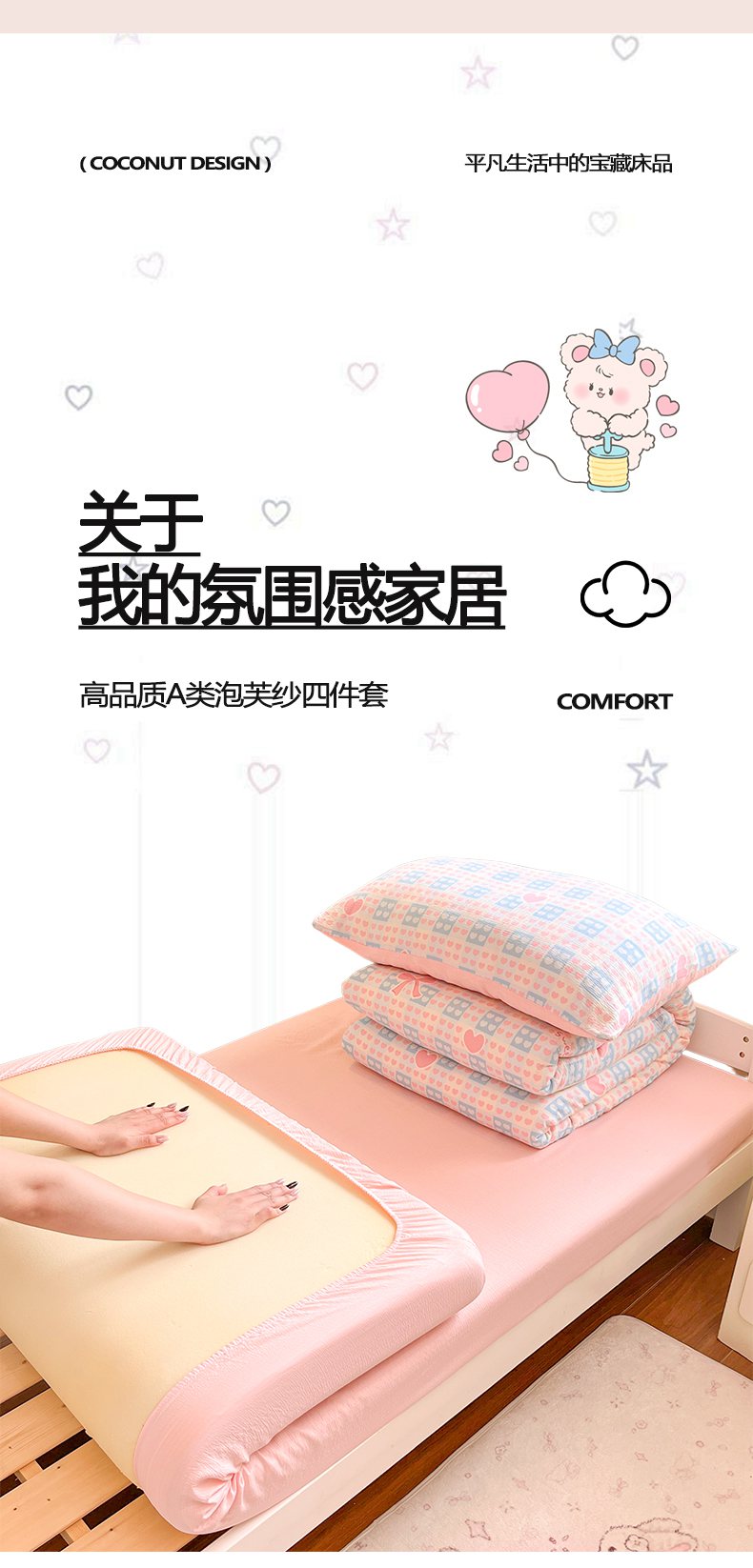 当前位置: 91家纺网 > 商品网购 > 床品套件 > 三件套 > 川悦生活 【提供买家秀】2026新款云感双层纱木棉学生床笠套件 甜梦心愿