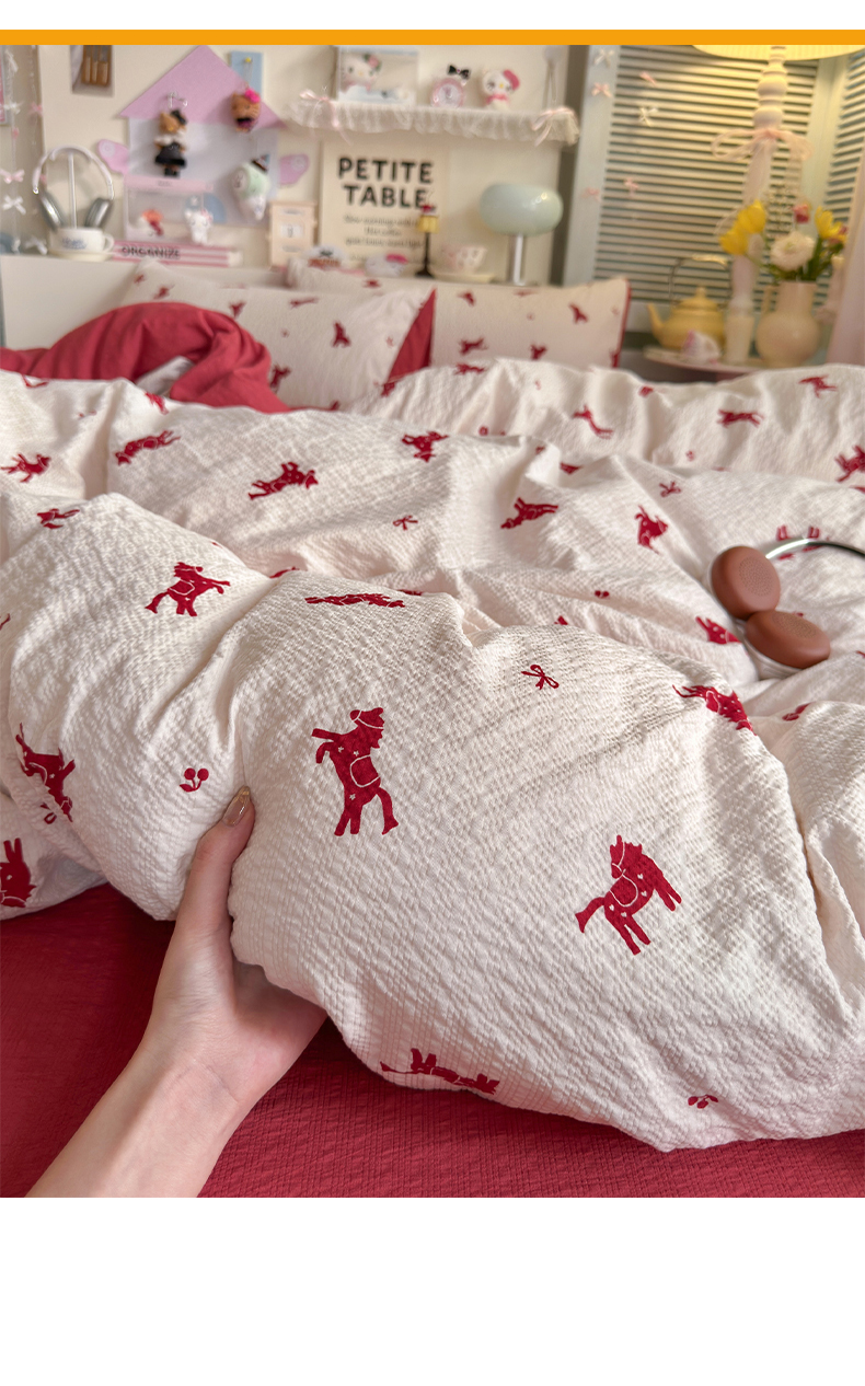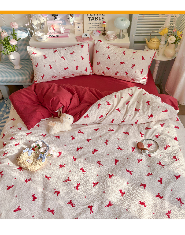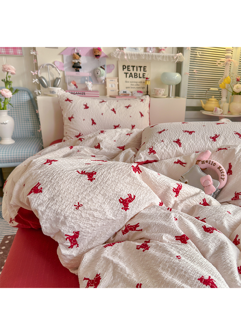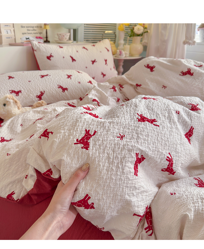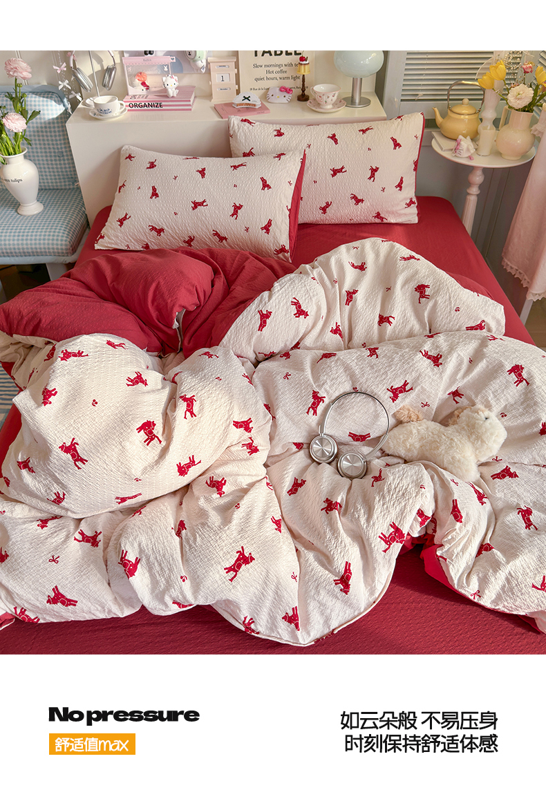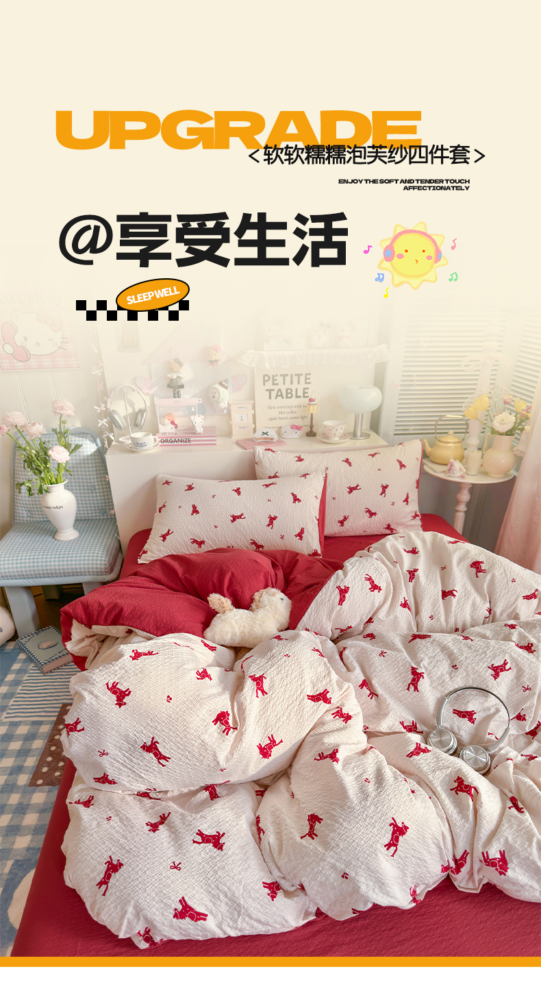 当前位置: 91家纺网 > 商品网购 > 床品套件 > 四件套 > 双层纱四件套 > 铺尚美家纺 2026新款小清新110g高品质直播热卖款A类泡芙棉双层纱四件套 马上有钱