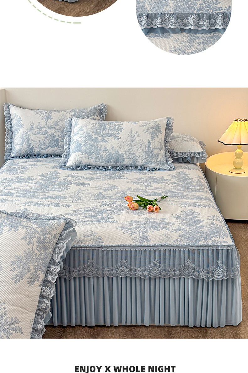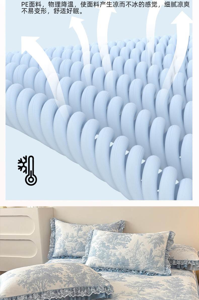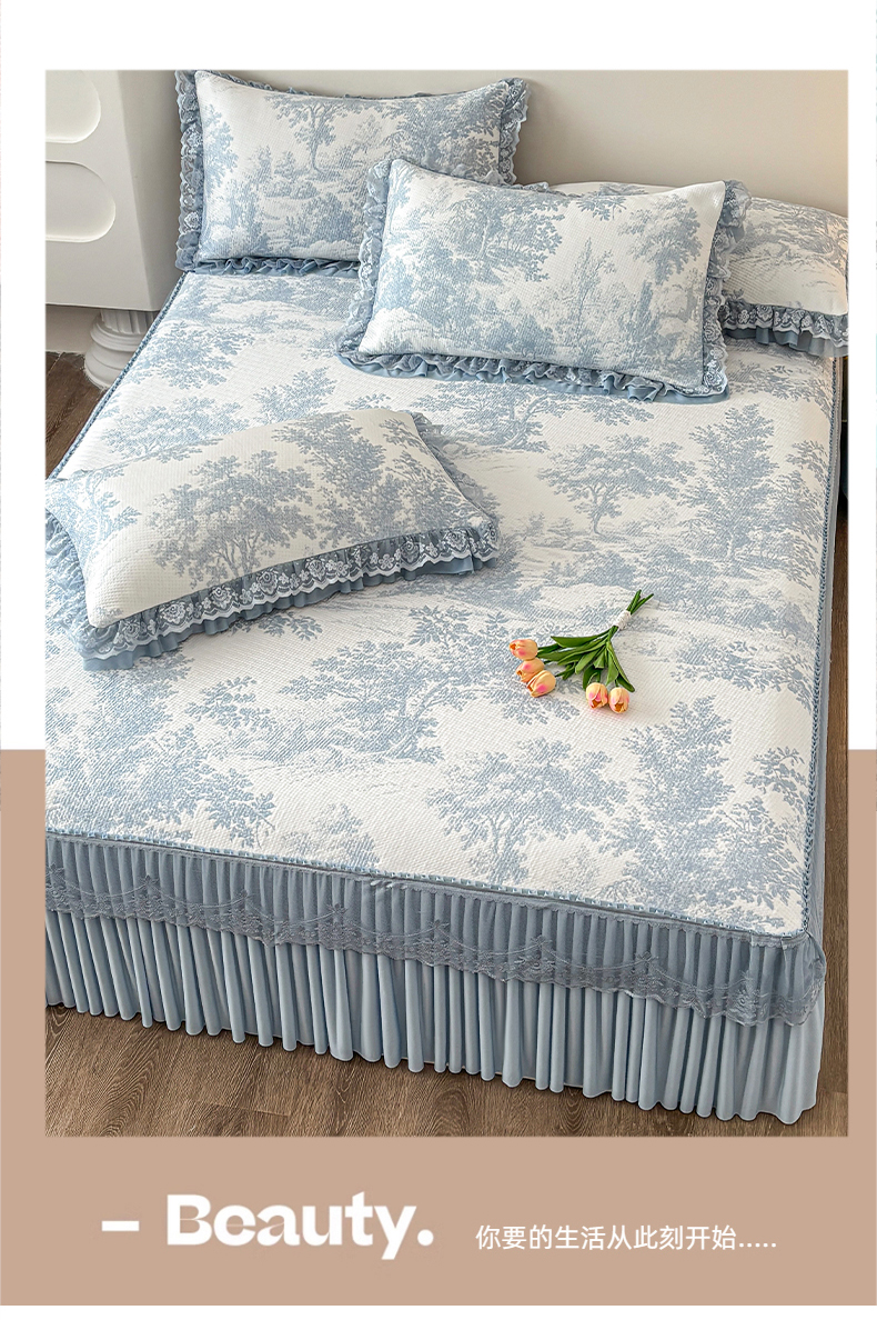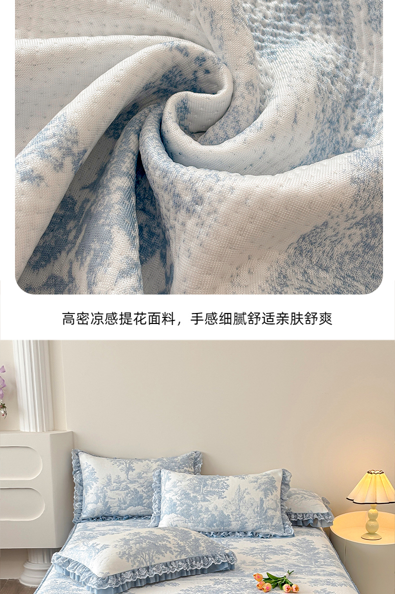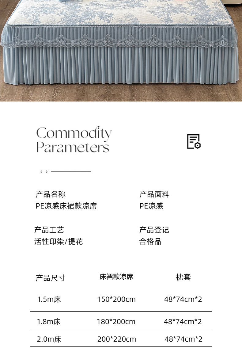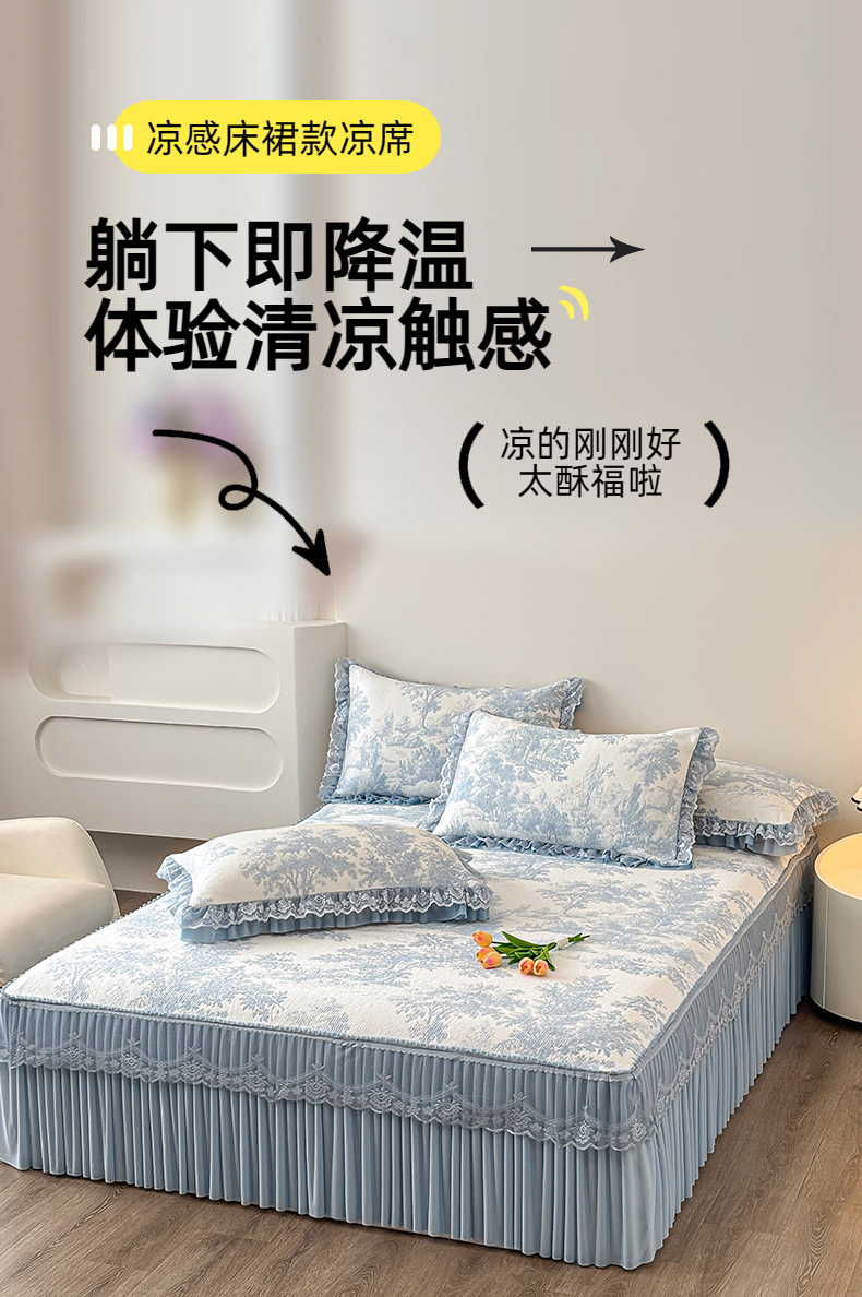 商品名称:金艾草 2026春夏新款PE凉感床裙款凉席席子空调软席 清新-蓝色