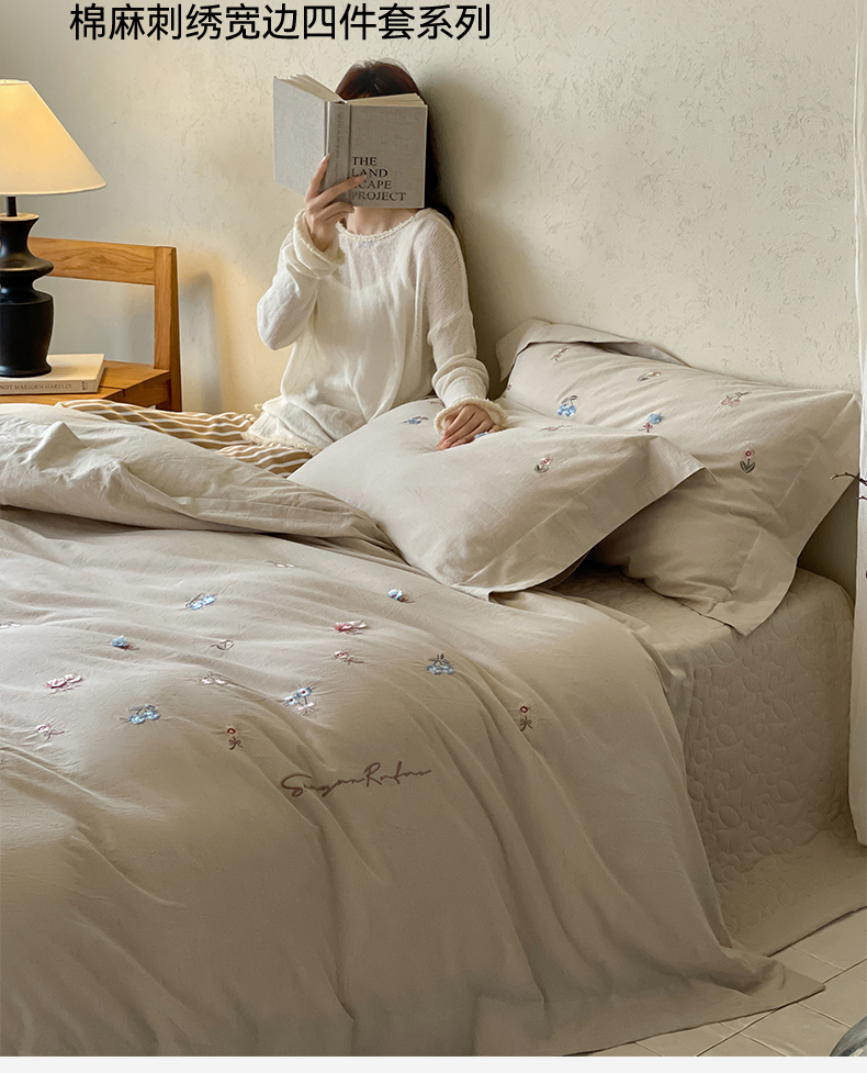 当前位置: 91家纺网 > 商品网购 > 床品套件 > 四件套 > 棉麻四件套 > 名品优仓 2026春夏新款棉麻刺绣四件套-摩尔庄园 摩尔庄园一咖