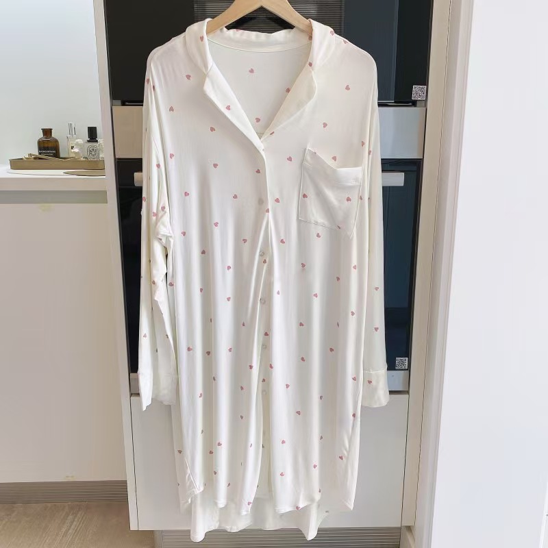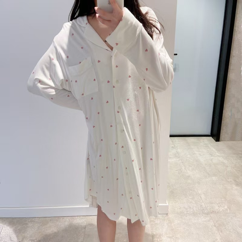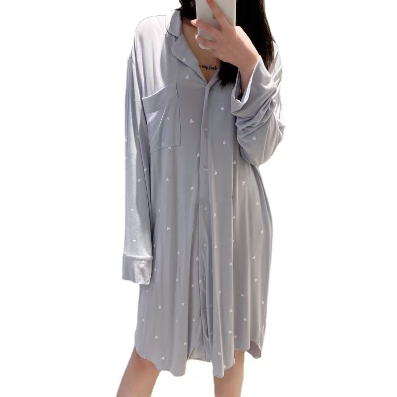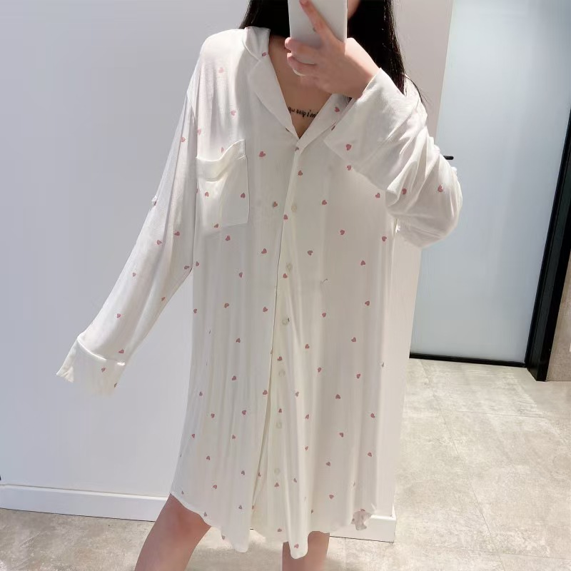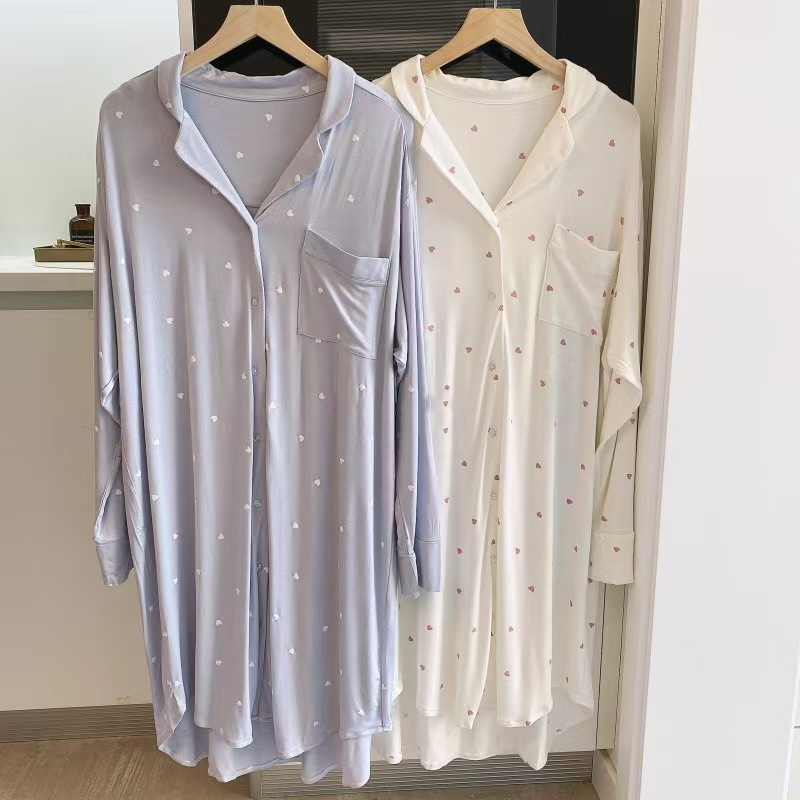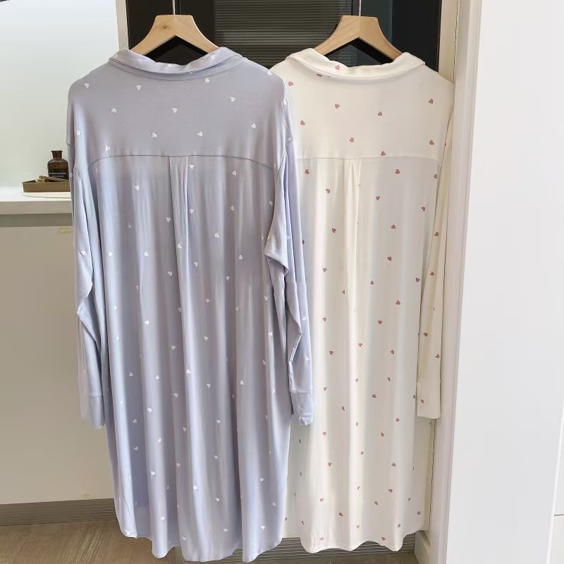 (总)洛兰沙家居馆 日系睡裙女春秋莫代尔棉短袖长裙家居服休闲宽松舒适睡衣可外穿