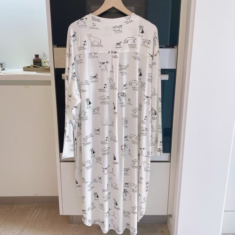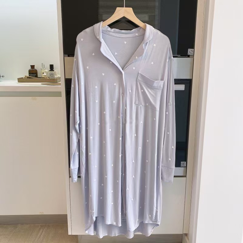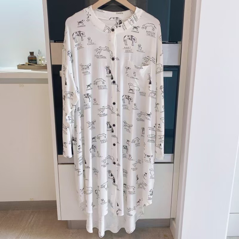 (总)洛兰沙家居馆 日系睡裙女春秋莫代尔棉长袖长款家居服休闲宽松舒适大码居家睡衣 ,花色1,花色2,花色3,花色4