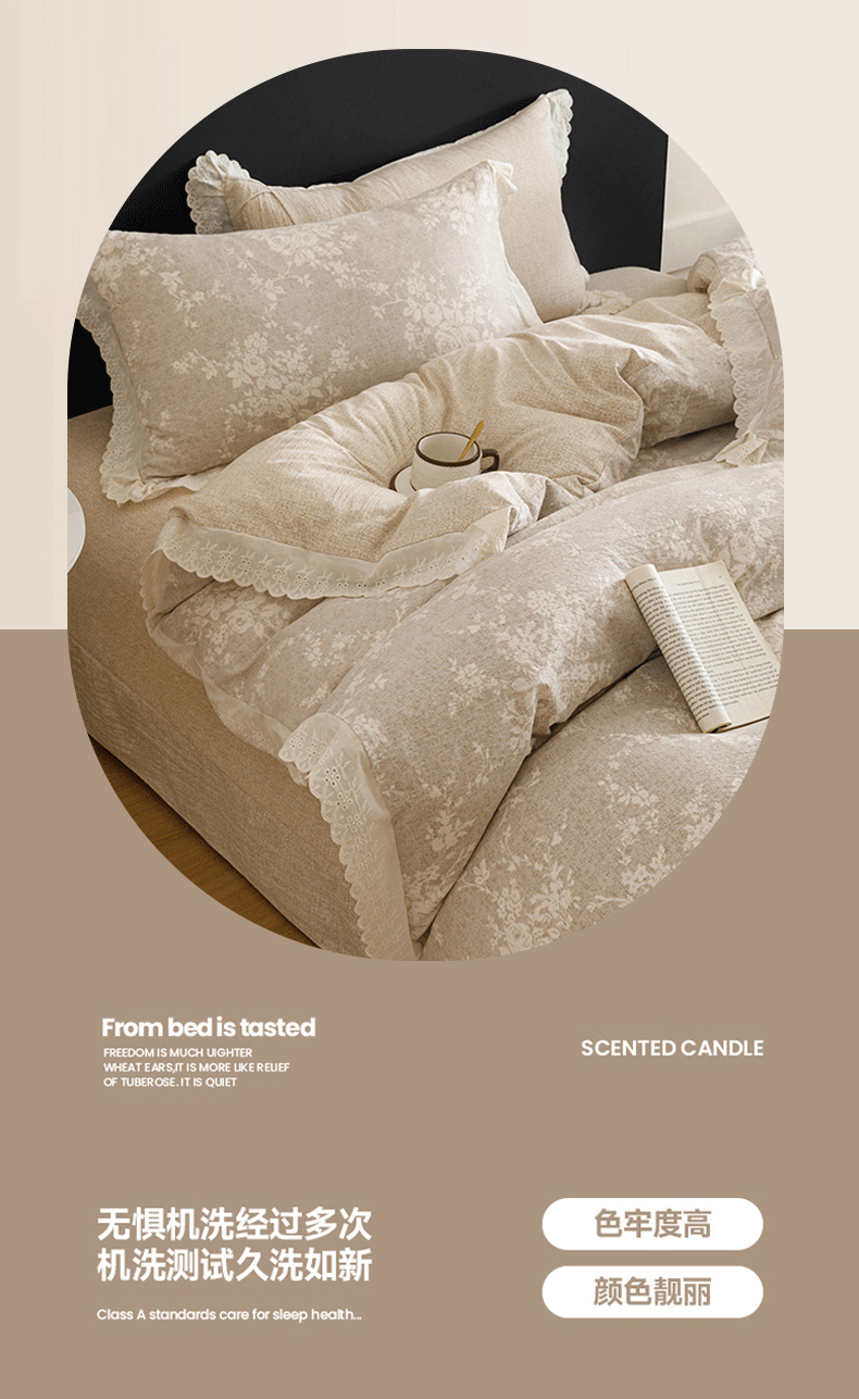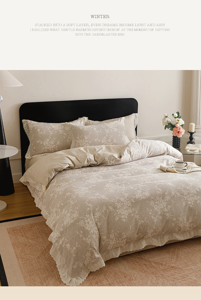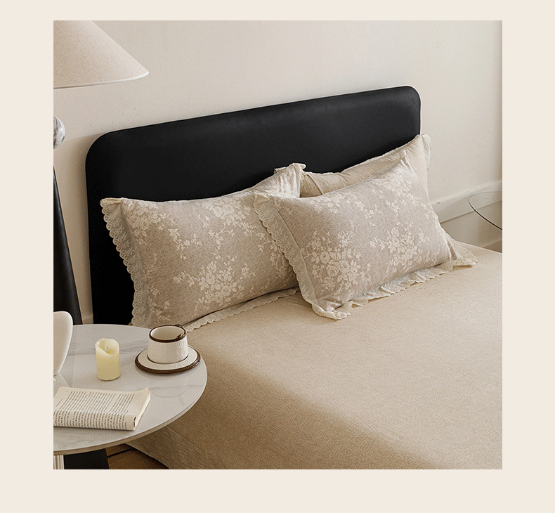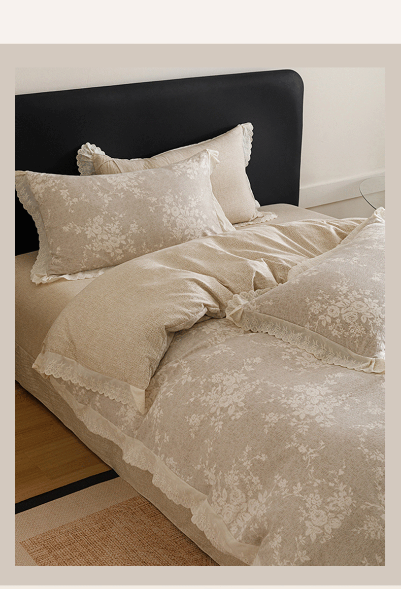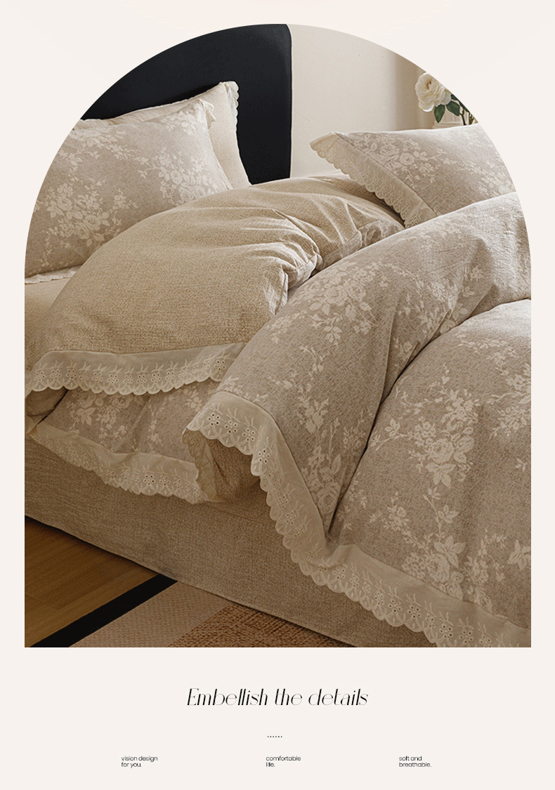 商品名称:悦然毛巾被 2026春夏新款加厚原麻水洗复古风四件套亚麻提花花边四件套 相思叶