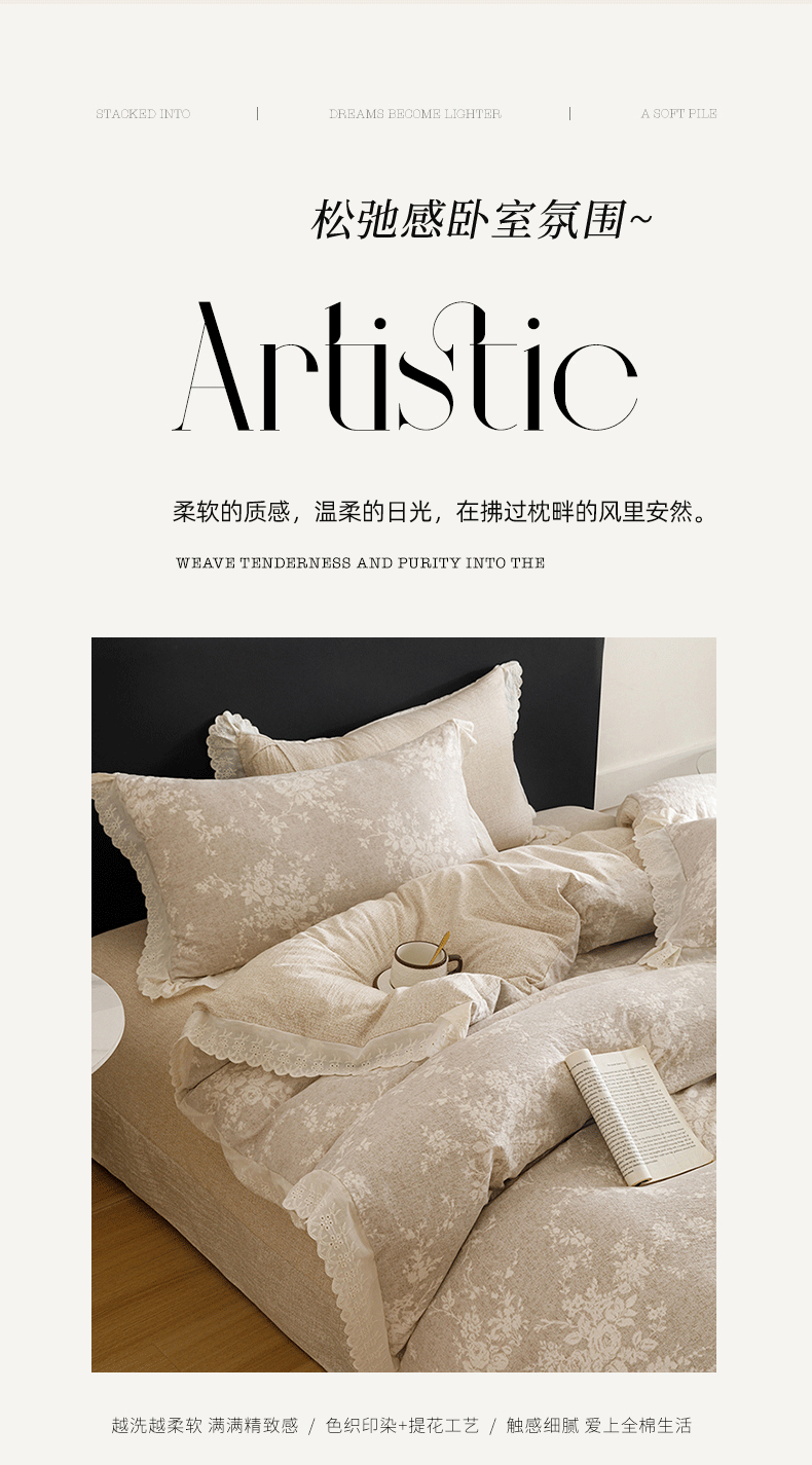 (总)悦然毛巾被 2026春夏新款加厚原麻水洗复古风四件套亚麻提花花边四件套,浮雕花影,花梦缘,花影织梦,木棉花信,相思叶