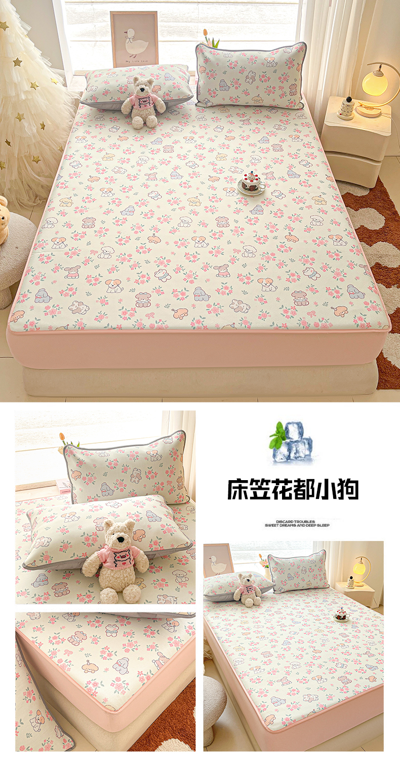商品名称:川悦生活 2026新款凉豆豆斜纹冰丝凉席单品床笠单件床笠 床笠花都小狗