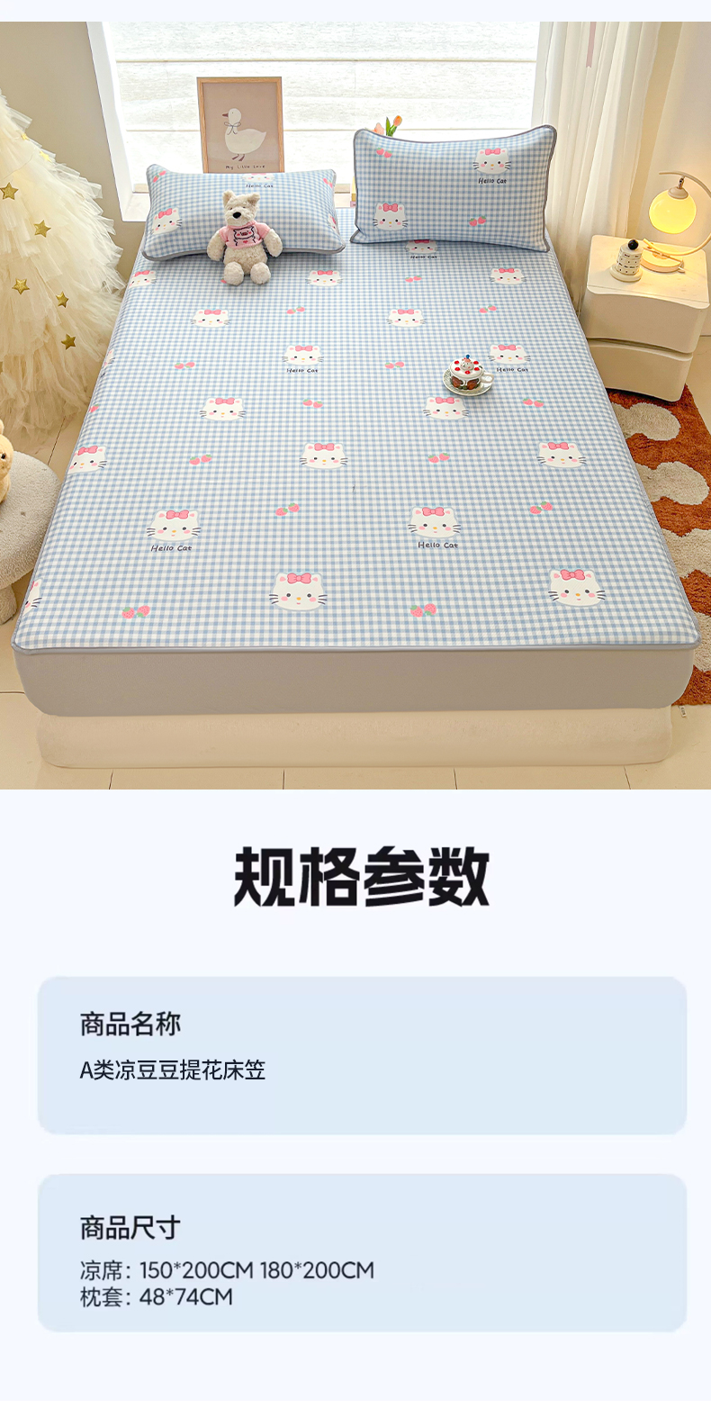 商品名称:川悦生活 2026新款凉豆豆斜纹冰丝凉席单品床笠单件床笠 床笠晴天星星
