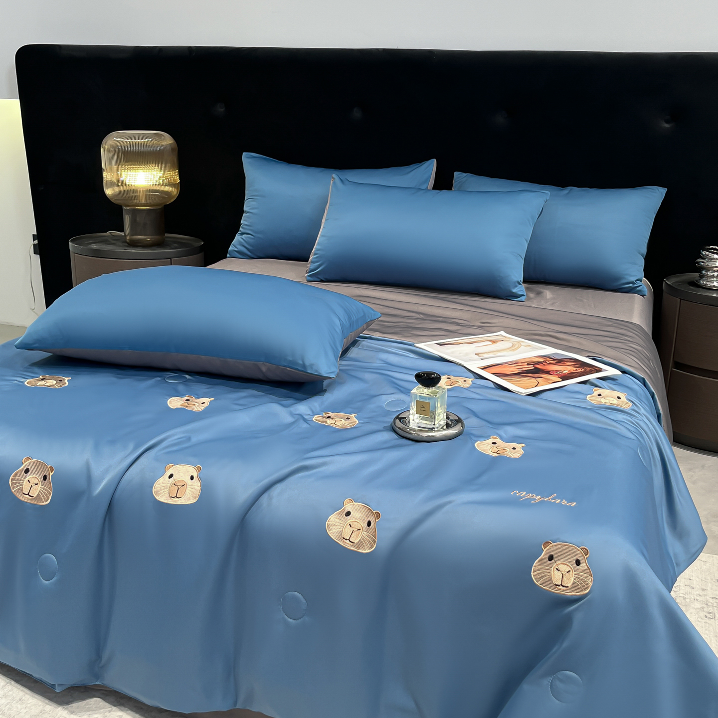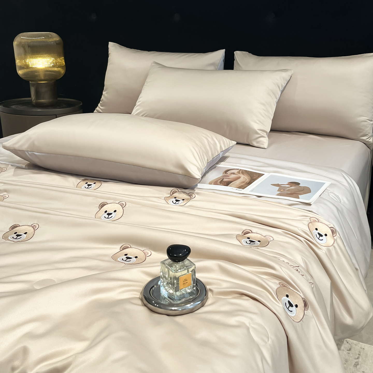 当前位置: 91家纺网 > 商品网购 > 床品套件 > 四件套 > 夏被四件套 > 红嘴企鹅 2026新款水洗冰丝刺绣夏被四件套 夏被-小熊 天兰