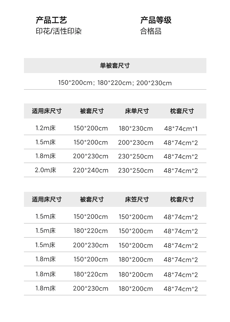 【床笠款】1.8四件套-被套200x230 | ¥58.00 |