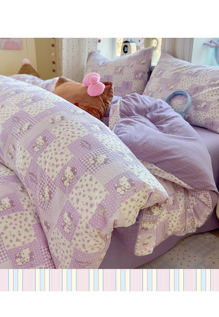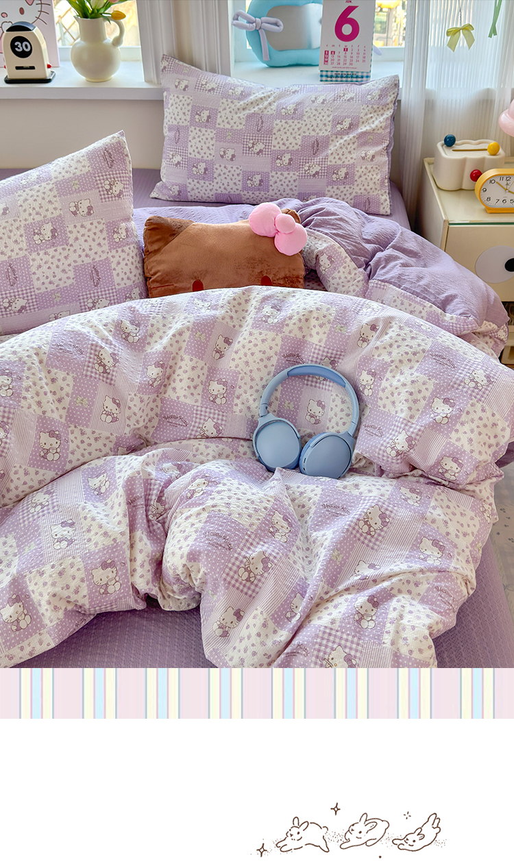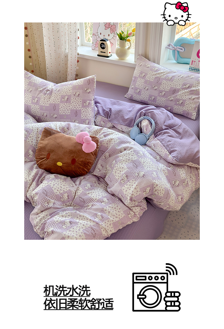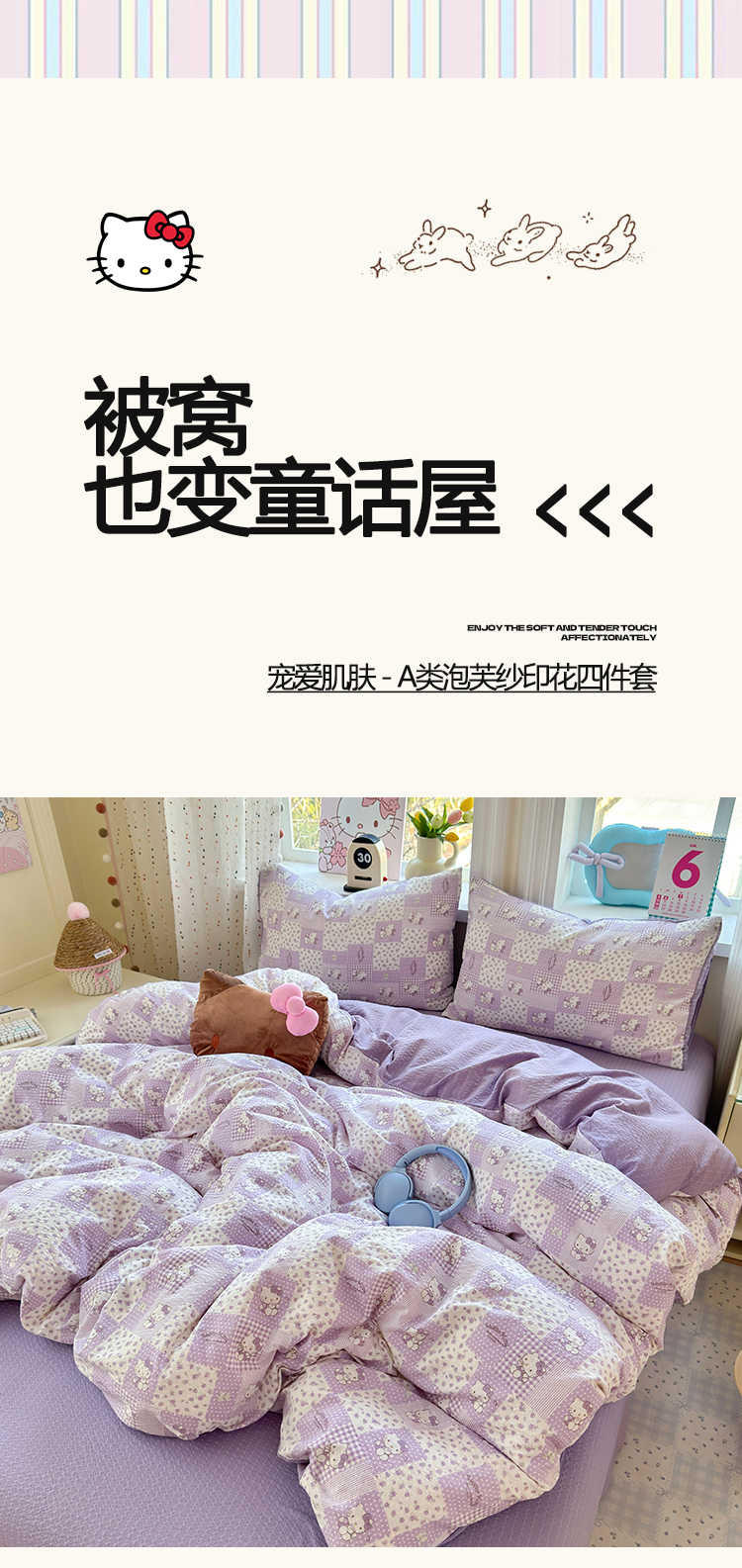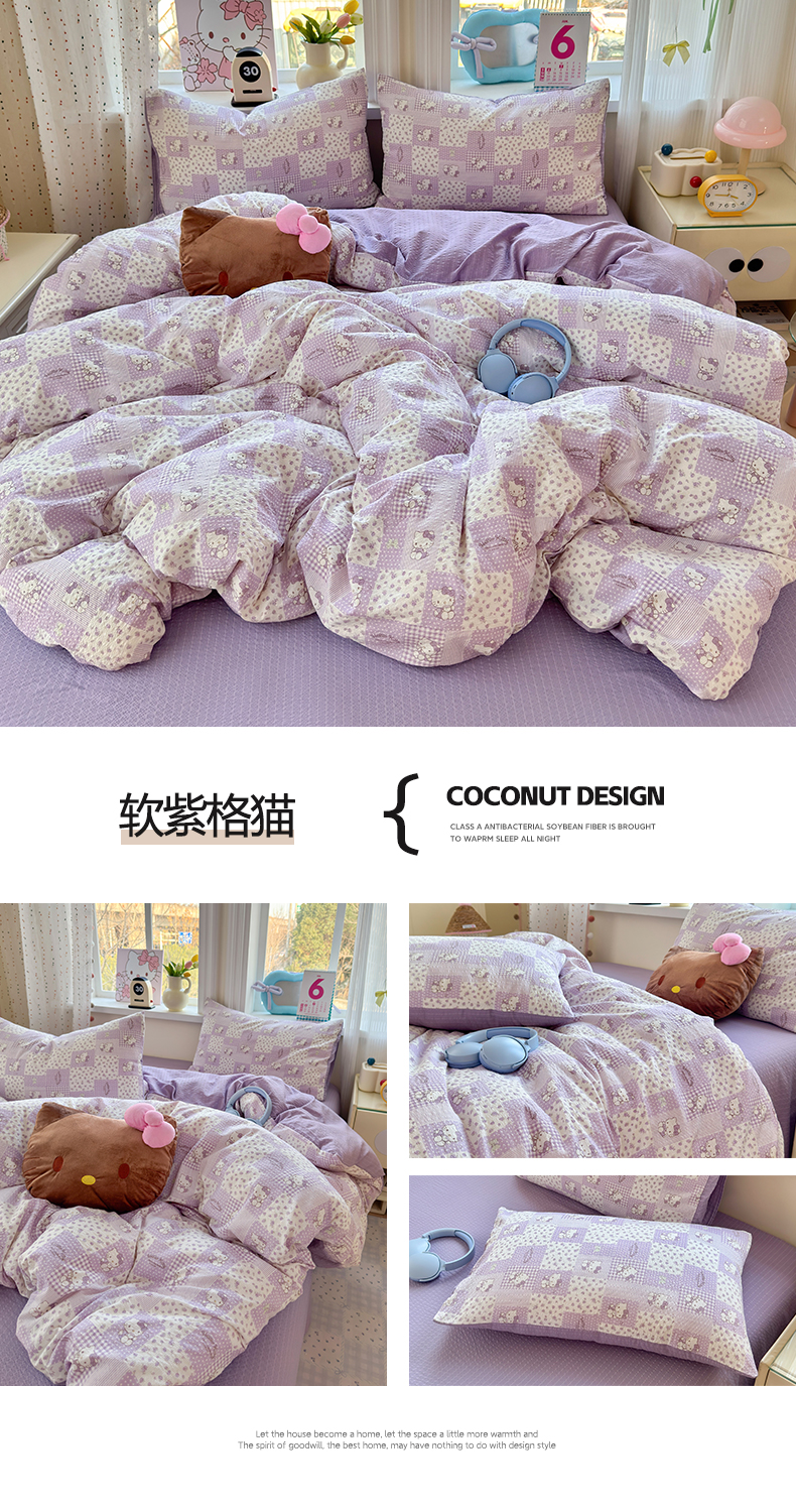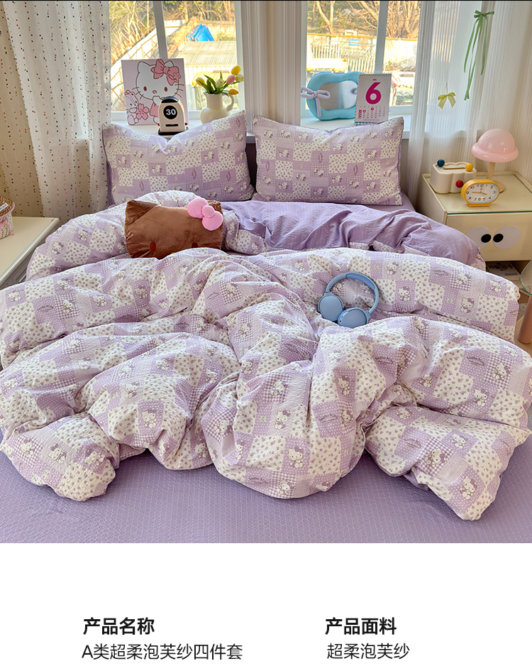 当前位置: 91家纺网 > 商品网购 > 床品套件 > 四件套 > 化纤普通四件套 > 星禾优选 2026新款A类泡芙纱印花四件套 软紫格猫