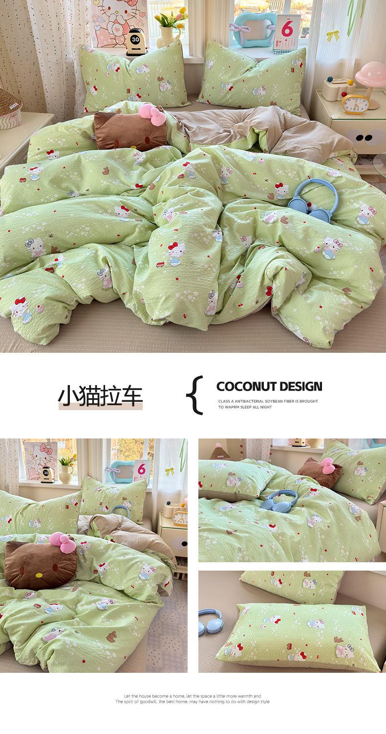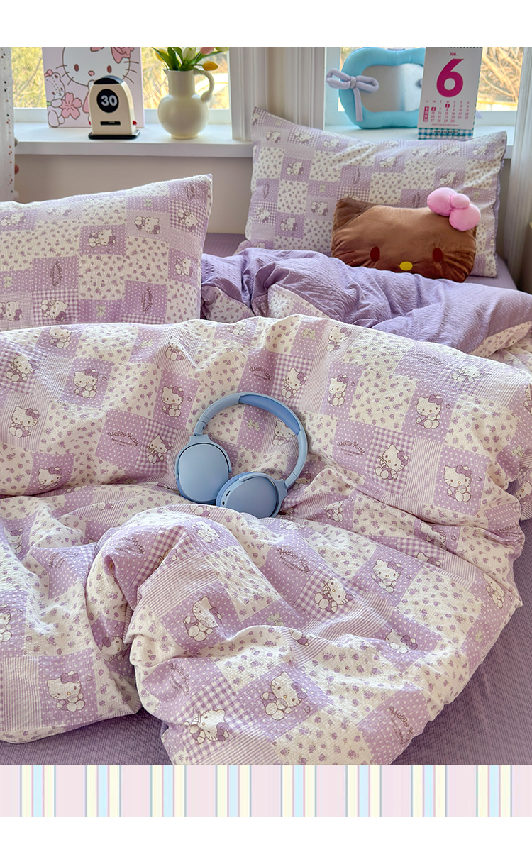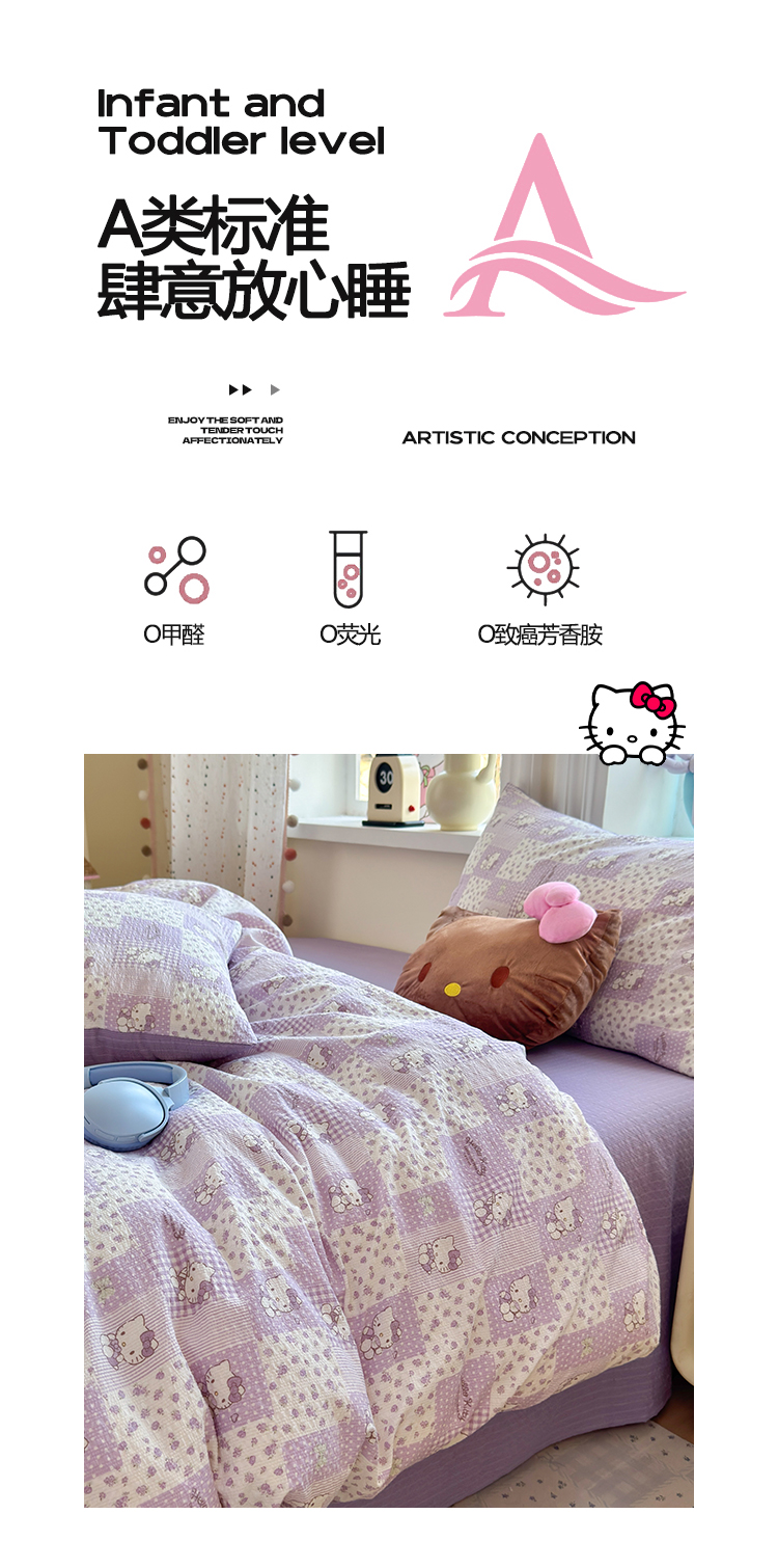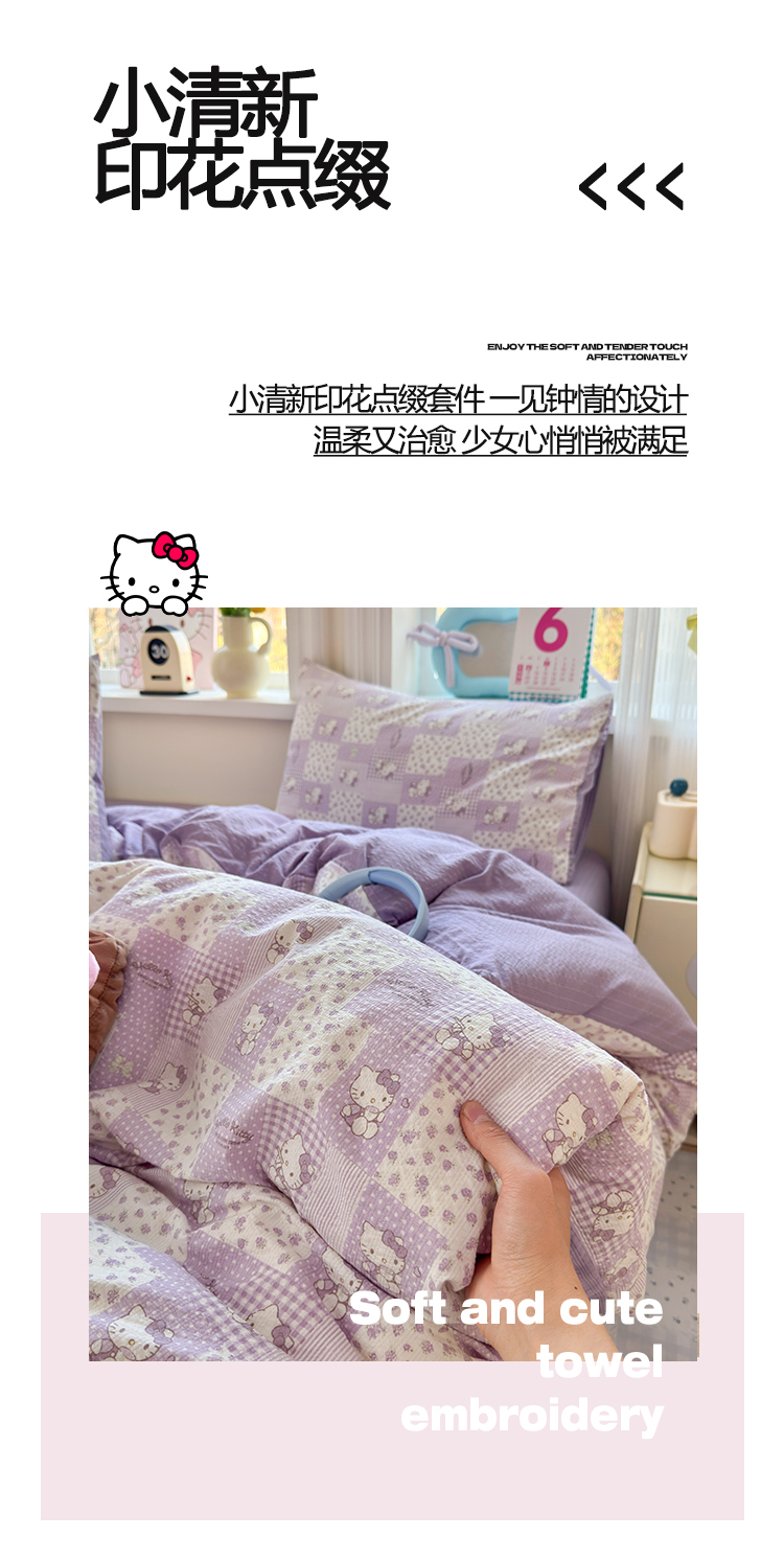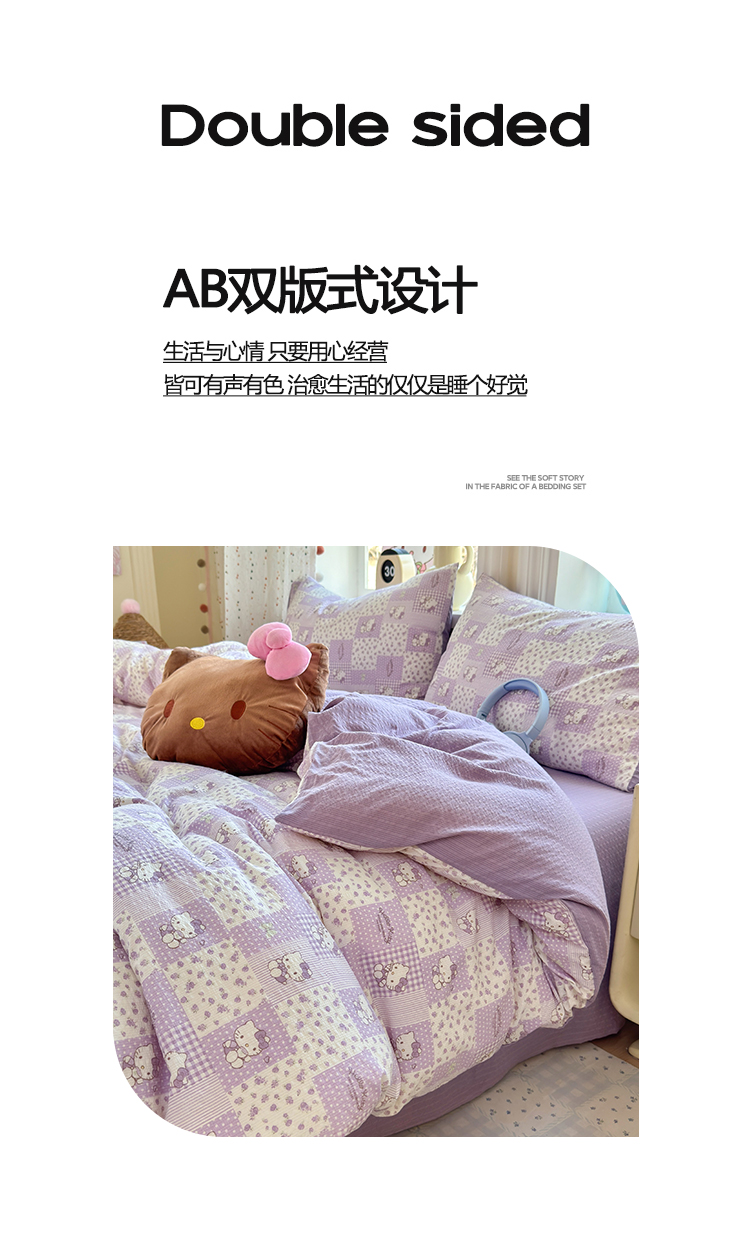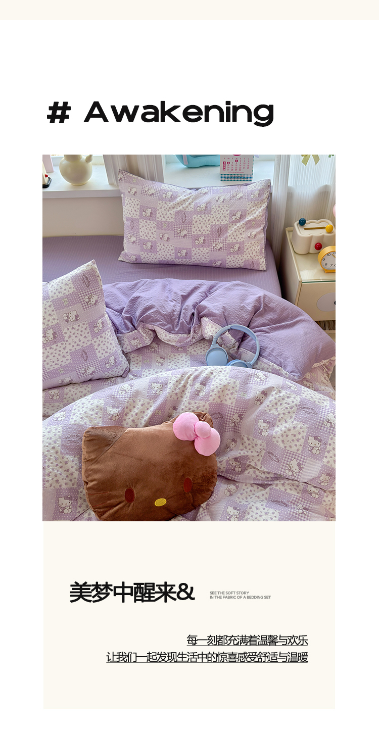 当前位置: 91家纺网 > 商品网购 > 床品套件 > 四件套 > 化纤普通四件套 > 星禾优选 2026新款A类泡芙纱印花四件套 软紫格猫