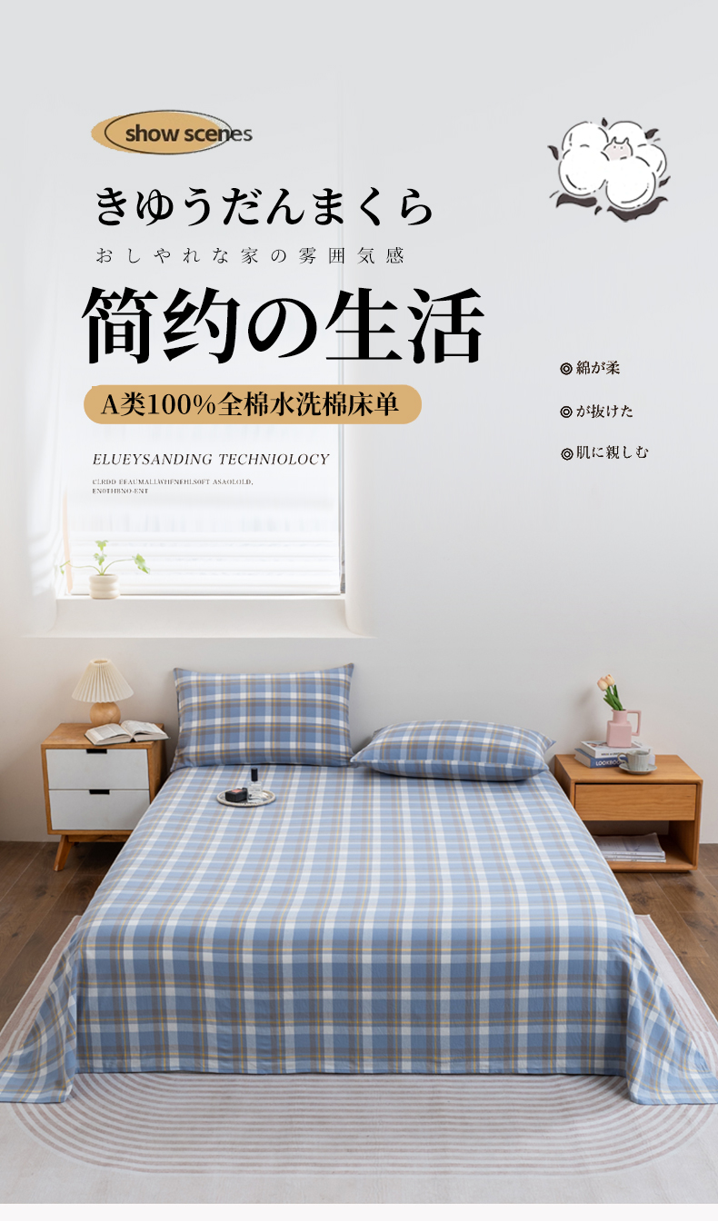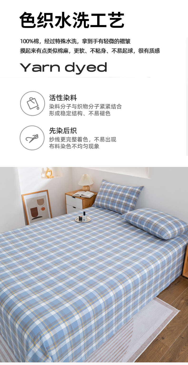 (总)居美良品 2026新款100%全棉色织水洗棉A类纯棉床单单品床单床单单件,碧波青,高冷灰,灰小格,经典灰,静雅-蓝,静雅-绿,静雅-玉,咖小格,蓝小格,绿小格,迷雾-蓝,奶茶咖,奶昔-白,浅水蓝,珊瑚玉,松石绿,香槟咖,烟雨-灰