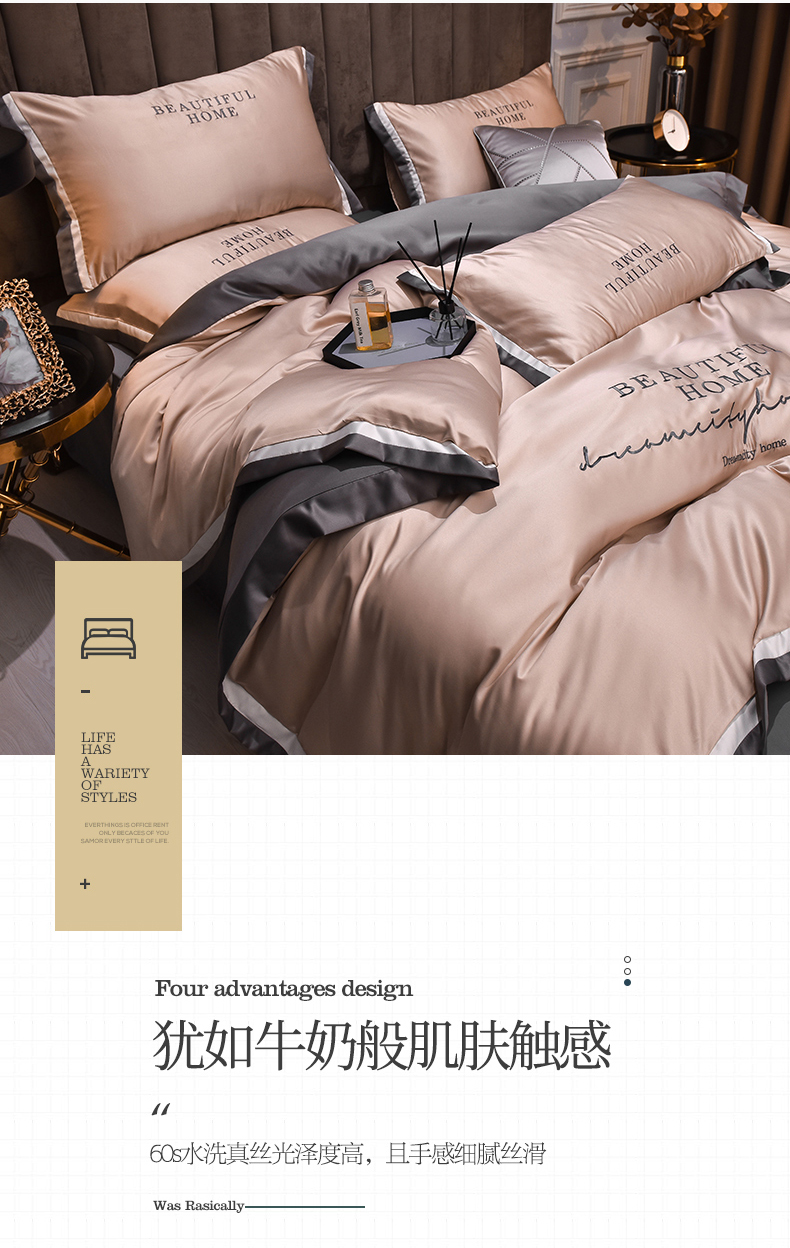 当前位置: 91家纺网 > 商品网购 > 床品套件 > 四件套 > 化纤普通四件套 > 首尔家纺 2026春夏新款水洗真丝绣花四件套寐系列 太妃咖