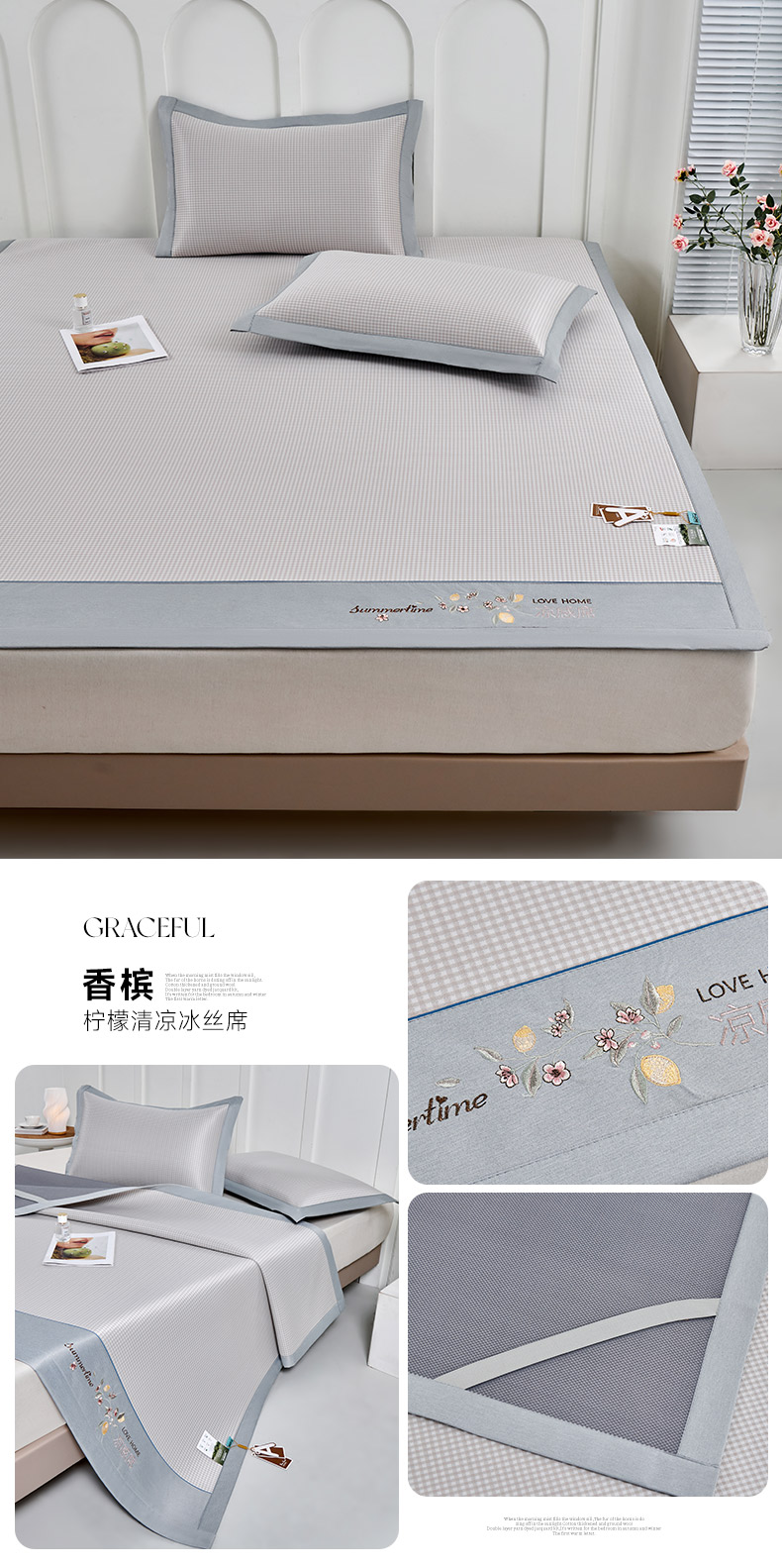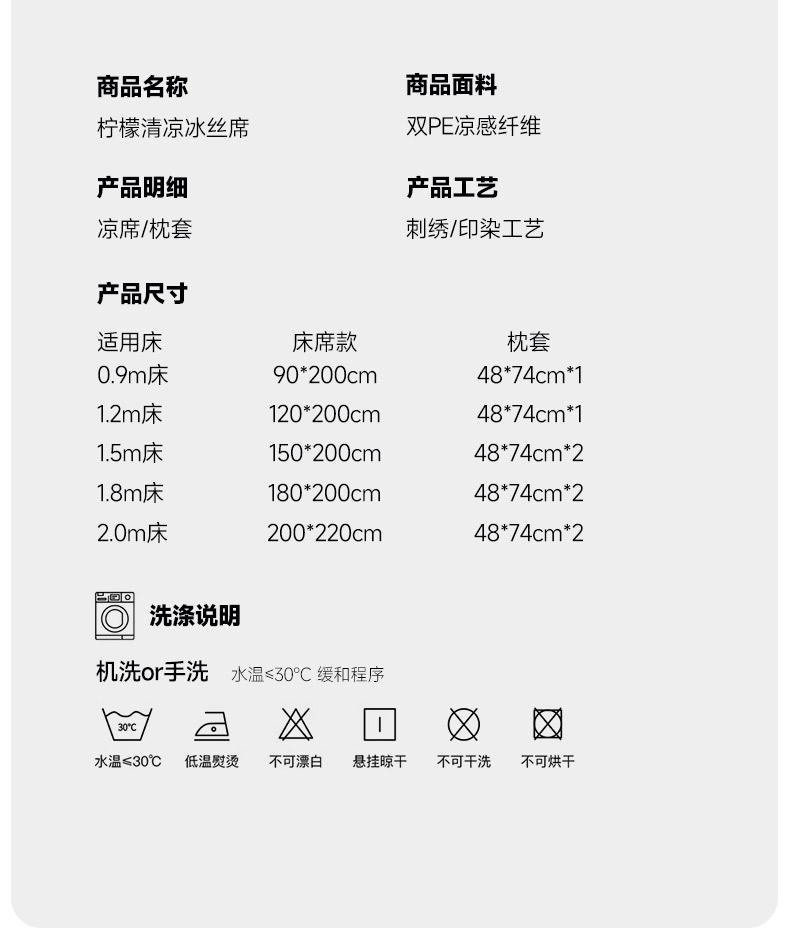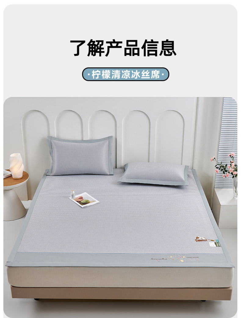 商品名称:小牛席业 2026新款柠檬清凉冰丝席凉席席子 灰色