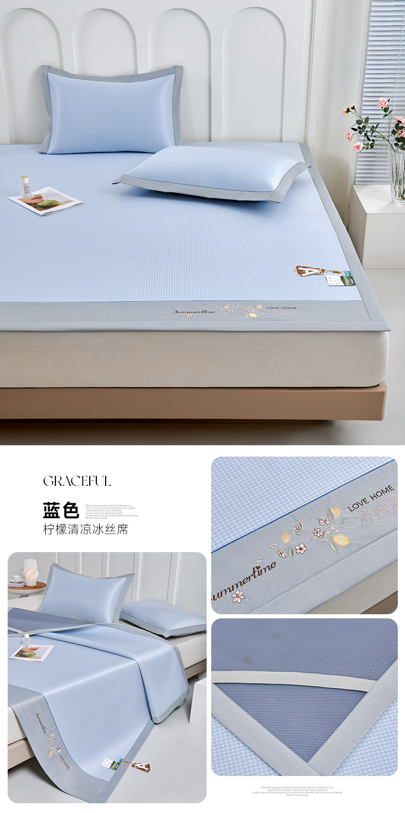 (总)2023新款超精密冰丝席-小斜纹系列-床笠款藤席凉席竹席,粉色,蓝色,绿色,银灰