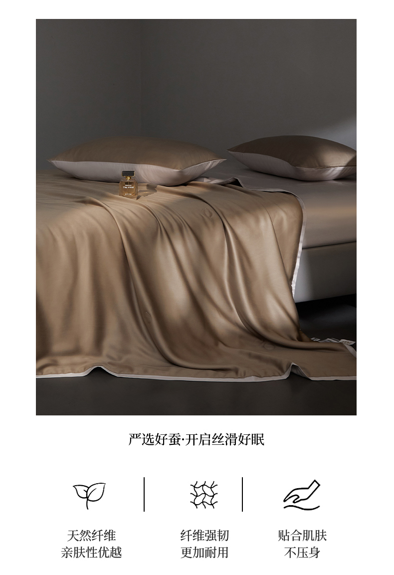商品名称:A+爱家(纪梵茜) 2026新品蚕丝被兰精天丝夏被四件套100%蚕丝夏凉被子夏季空调被 咖色